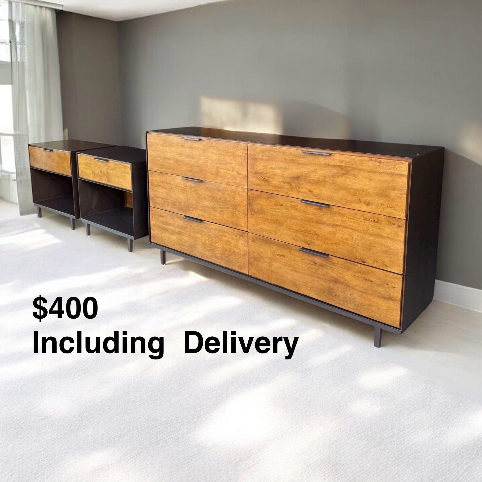 Wood & Metal Modern Dresser + 2 Nightstands — $400 Delivered 🚚