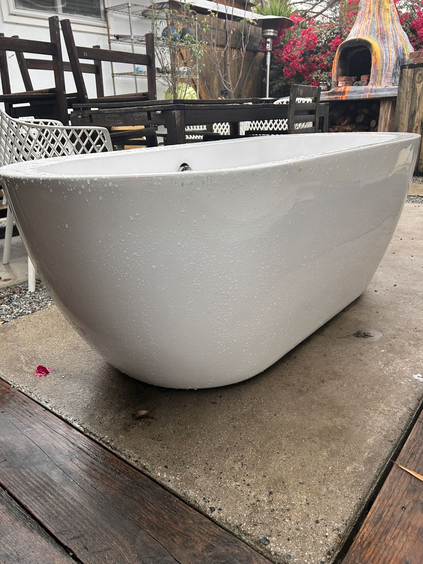 ✨ Modern Freestanding Soaking Bathtub – Acrylic – Like New ✨ Beautiful modern freestanding soaking tub with a clean oval design and thick, solid rim. Made of acrylic/fiberglass, so it’s lightweight (approx. 100lbs) but still very sturdy and comfortable. This is the popular spa-style tub you see in high-end remodels and luxury bathrooms. Details: Freestanding modern oval design Thick rim, smooth glossy white finish Acrylic / fiberglass construction Lightweight and easy to transport Integrated overflow & drain opening Very clean condition (no cracks, no repairs) Size: ~60 long ~30” wide ~23” tall inside Why it’s great: Deep soaking comfort Fits modern, minimalist, or luxury bathrooms Much easier to move and install than stone or cast iron tubs Retail tubs like this sell for $2,000+ new 💰 Asking: $450 OBO (Open to reasonable offers — priced to sell) 📍 Pickup only Bring a blanket & straps — I can help load.