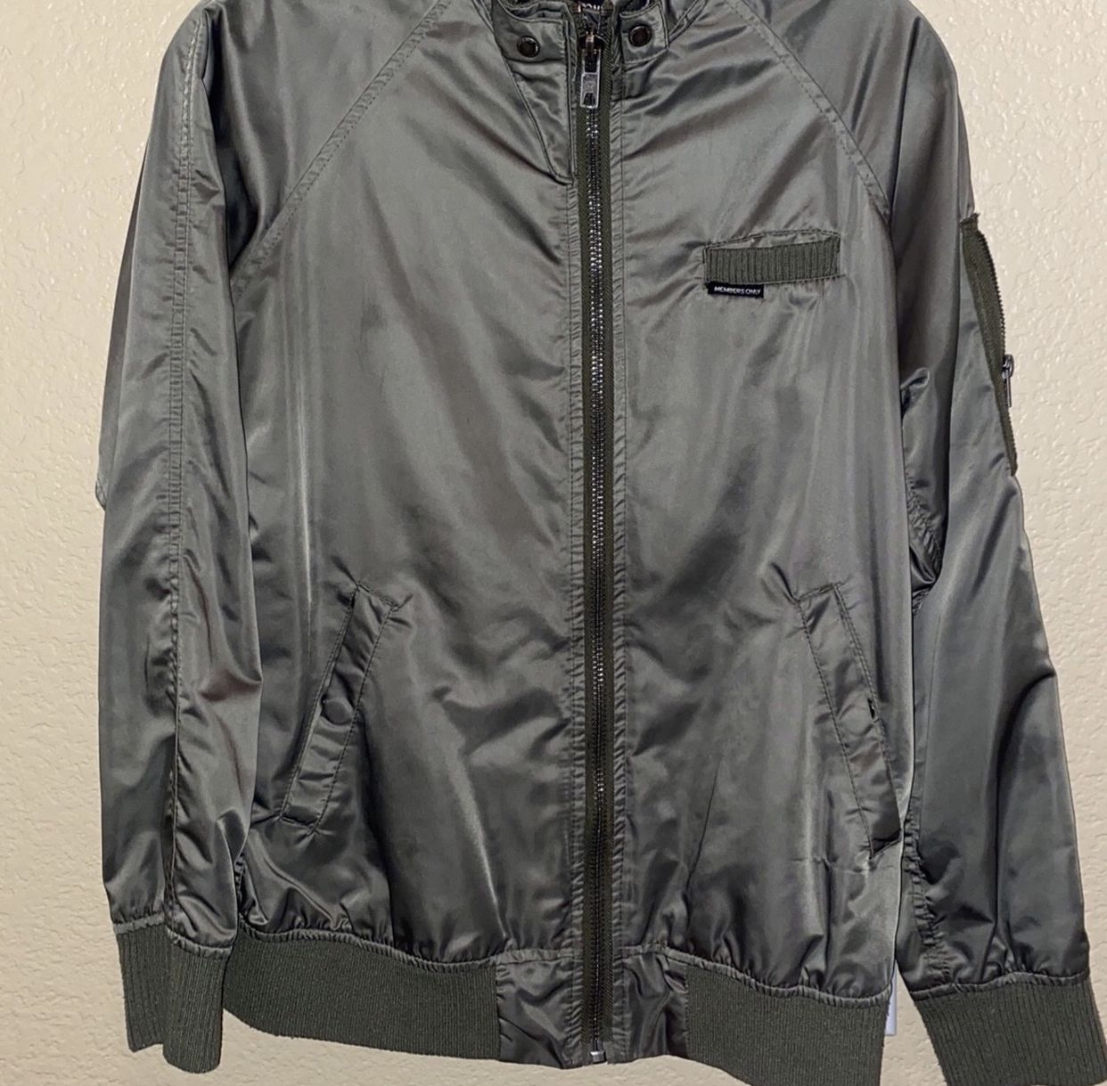 **CASH ONLY** **NOT AT SHOP!** **PICK UP ONLY- Menifee, CA** **XPOSTED** MUST MAKE AN APPOINTMENT FOR PICK UP 🕰 (Because some of our items are in storage and not in shop.) 💰 Pop’s Treasure Shop 27072 Sun City Blvd., Menifee, CA 92586 🧸 Open Mon-Sat 10-4 📻 7 Day Return Policy on Electronics ONLY! 🎮 We’ve got lots of great stuff!! 🏺- Pop on by, and come say “Hi”! Men’s Members Only Jacket SEE PHOTOS FOR CONDITION! Color: Green Size: Small Price: $20 FIRM Please PM me if you’re interested! Thank you!