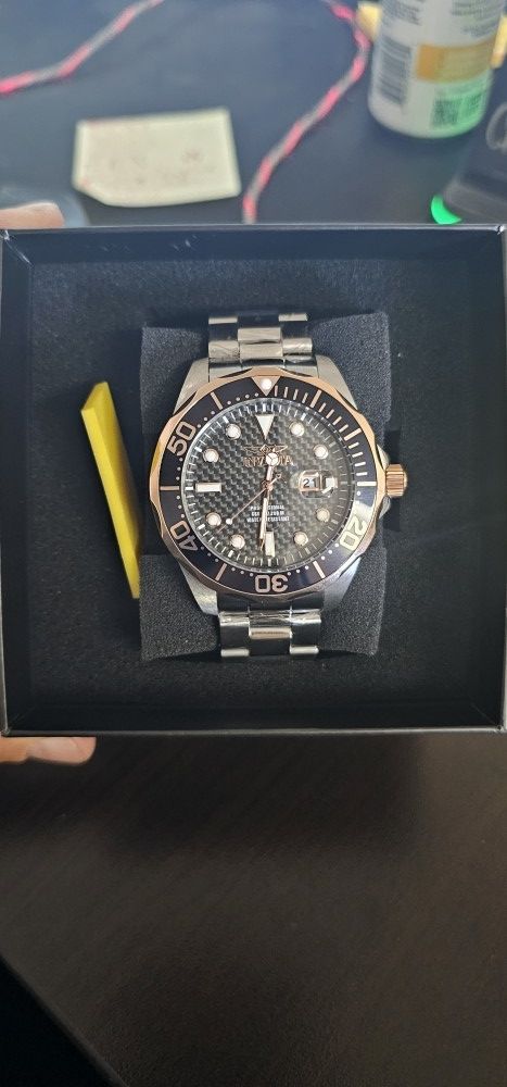 Rose gold and carbon fiber. This watch is brand new. Sitting in the box. To big for my wrist. Looking for 100$