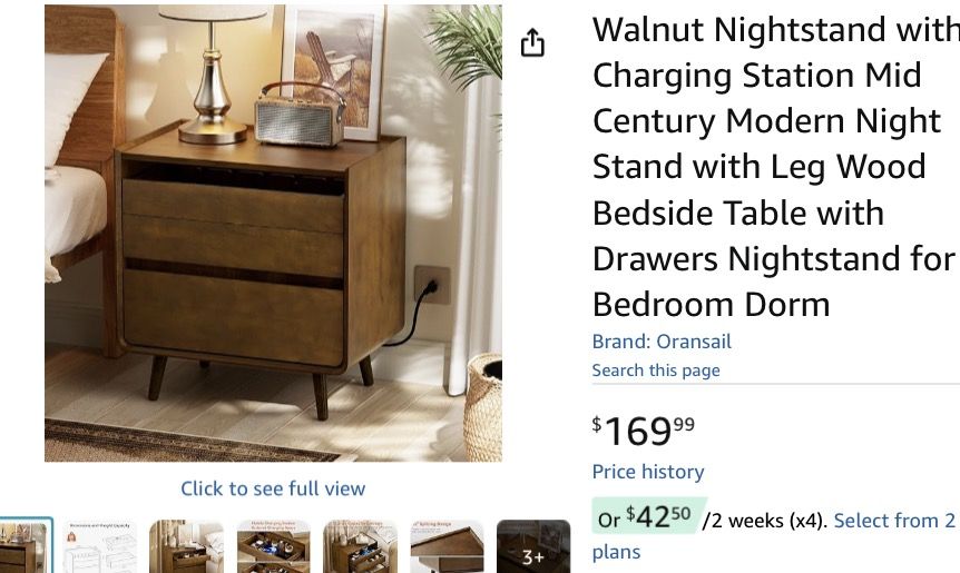 Walnut Nightstand with Charging Station Mid Century Modern Night Stand. New in box.