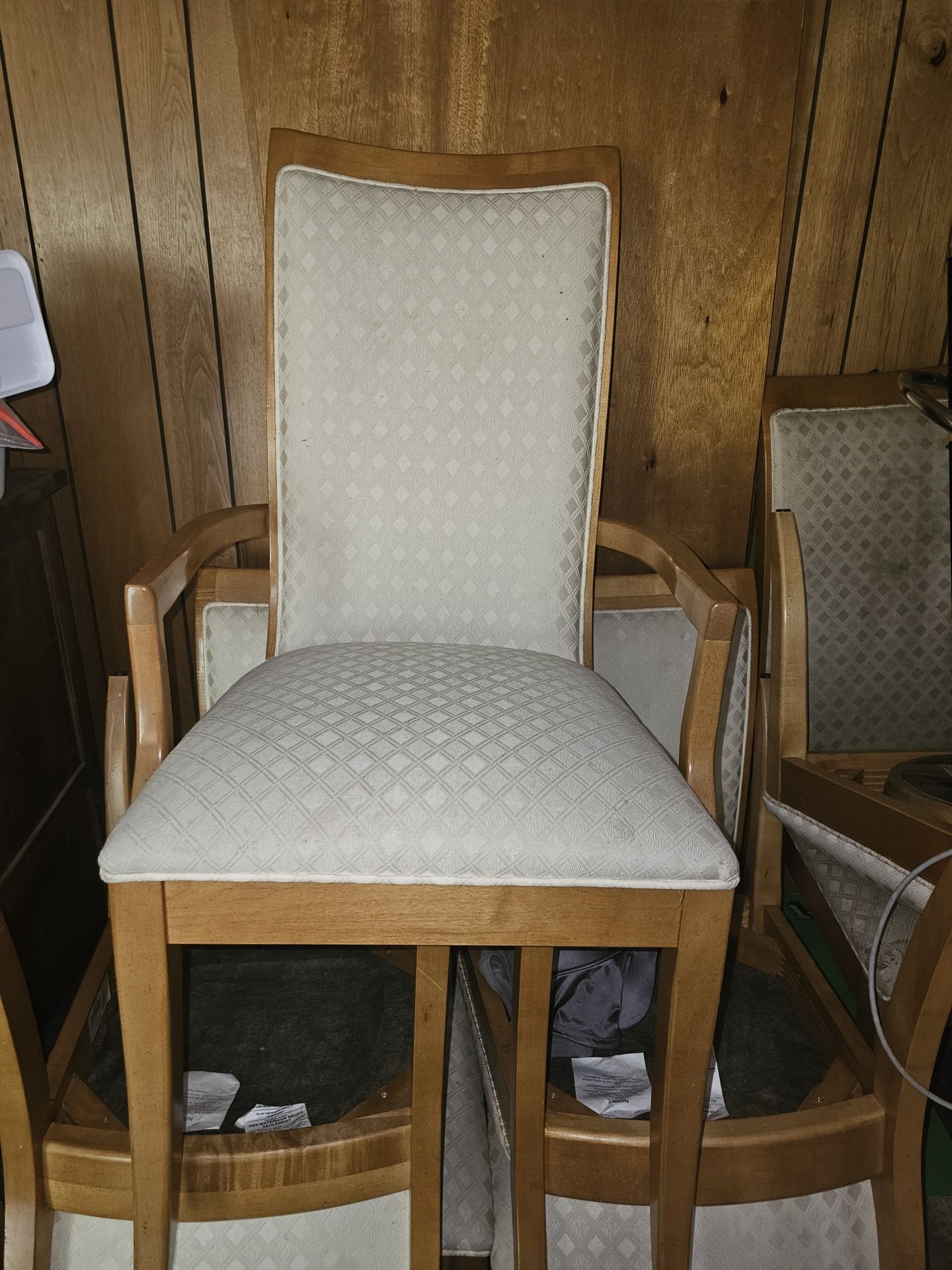 The China, you see in the picture does not come with the hutch. Some chairs are dirty.