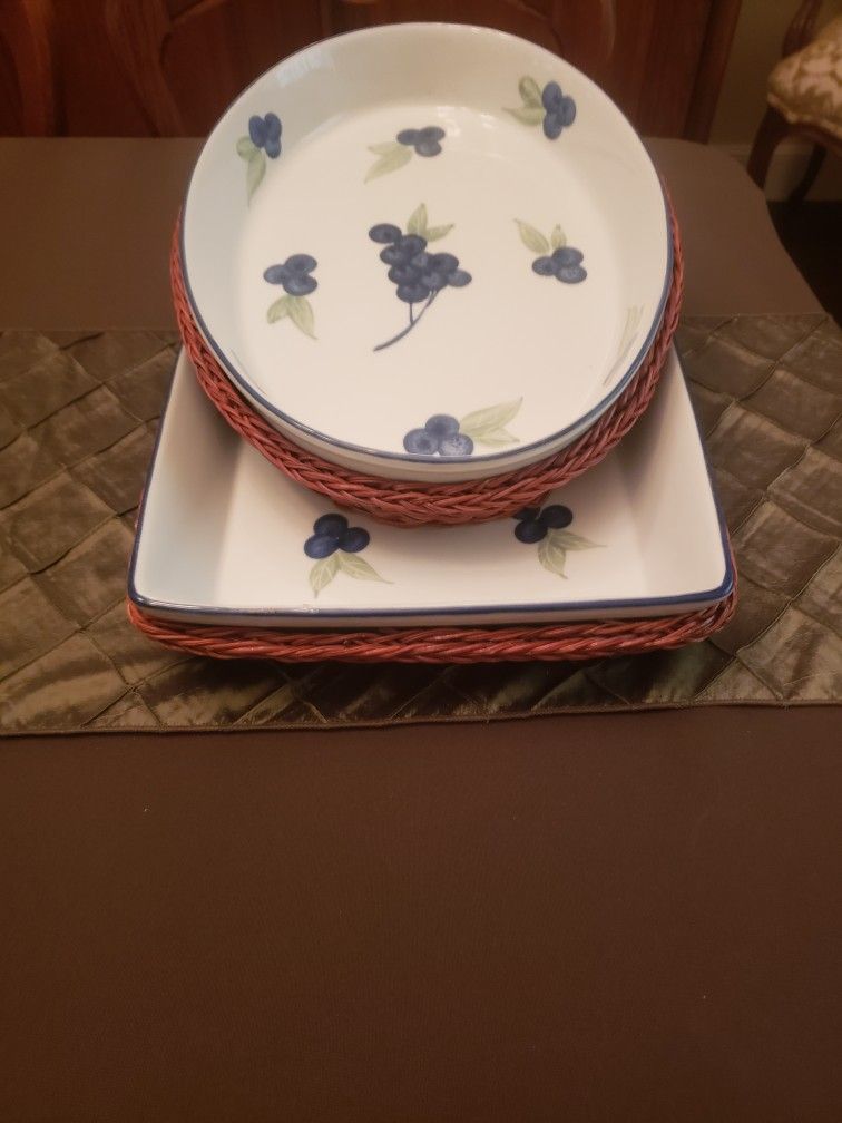 2 Decorative Ceramic Bakeware Platters With Baskets, Like New