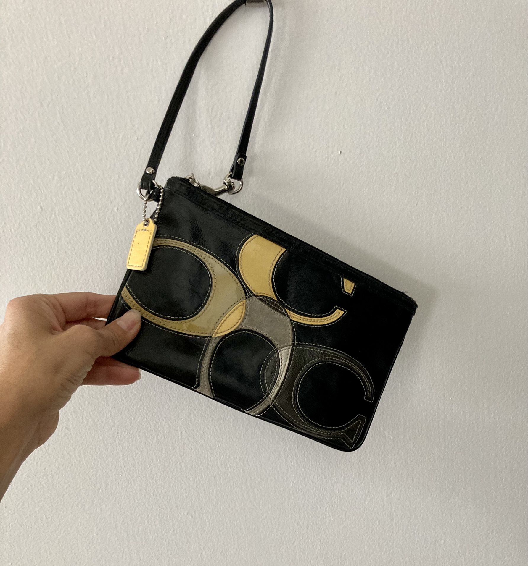 Used Vintage Coach clutch Coach logo on the from Black in the back This is an amazing little purse because it fits a lot ! Cell phone π± , makeup π , keys π , and masks π· Used Vintage But in great condition