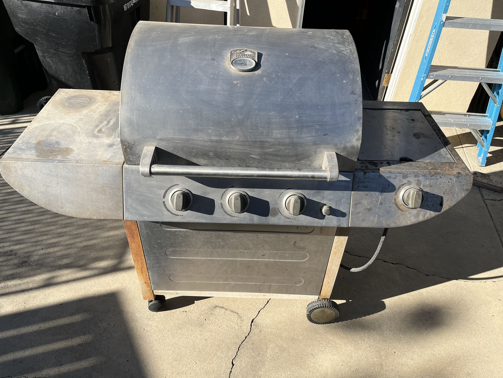Not sure if anyone would want this for free. Used stainless bbq grill - pretty weathered and rusty grates. 3 burners with side burner. Igniter doesn’t work but everything else works. Propane tank not included.