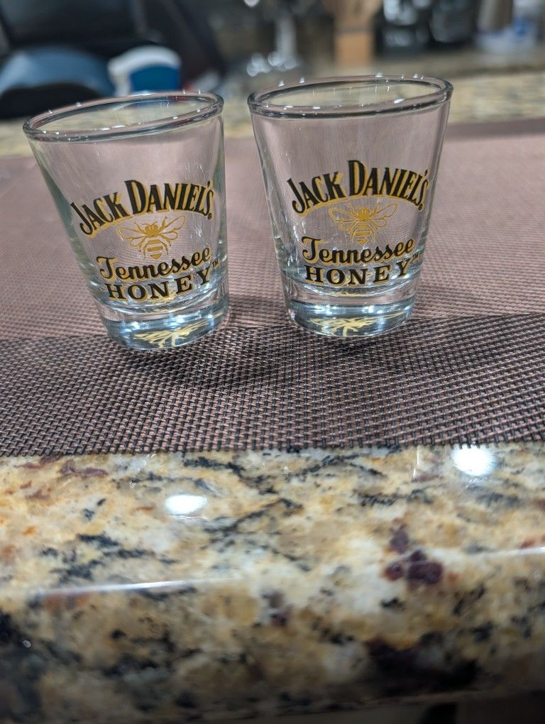 Cool pair of Jack Daniel's Tennessee Honey shot glasses. Has the classic Jack Daniel's logo with the bee for the honey flavor. Great for collectors or just for fun drinks. One retails for $11.