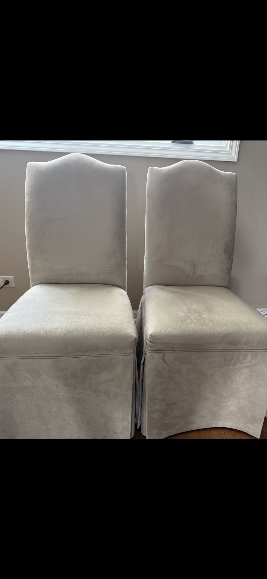 Two Light Beige Suede-Like, Fabric Chairs