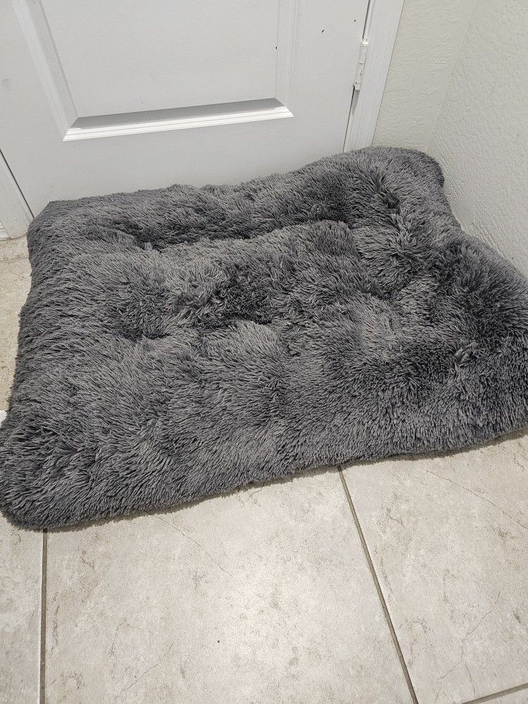 Comfy big pillow style pet bed. Size is 40"x28". Has rubbery non-slip underside...Our dog likes his bed to have walls, so this one only used one weekend and selling for half what we paid.