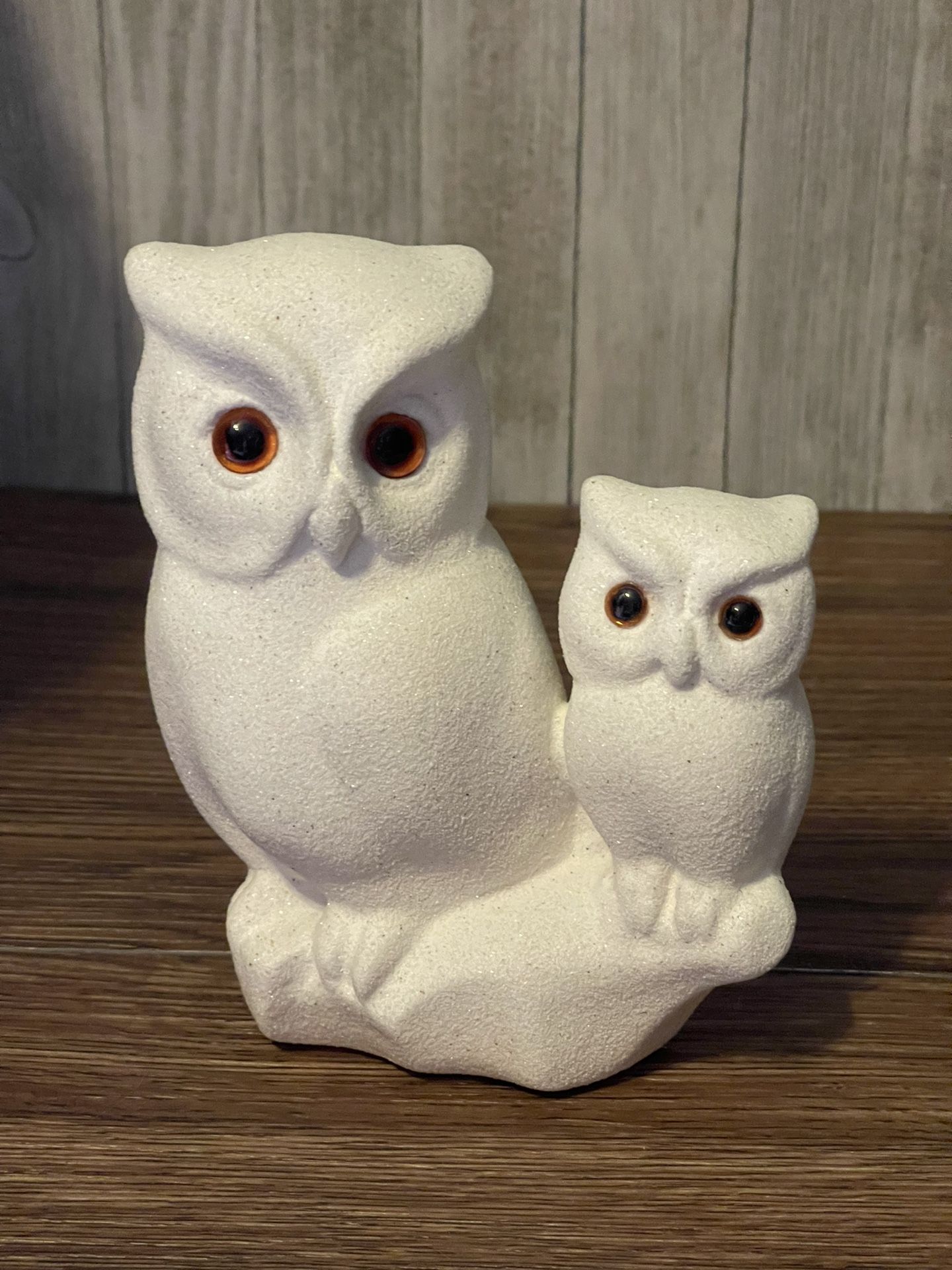 Vintage Mid Century Mexico Owl And Baby - Hand Crafted Ceramic Sand Stone Weighted Art Sculpture RARE Hand crafted textured owl and baby art sculpture Sand textured finish Cream / beige color Applied orange hand blown glass eyes Weighted 2 lb. 3 oz. without package material Sand stone / ceramic Vintage Mexican art sculpture Approximately 6 1/2” at it’s highest. Excellent condition. There are no chips, cracks, or worn areas that I can see. Please see pictures for further description. Great gift for the owl collector!