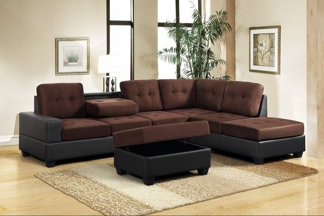 New Chocolate Reversible Sectional And Ottoman