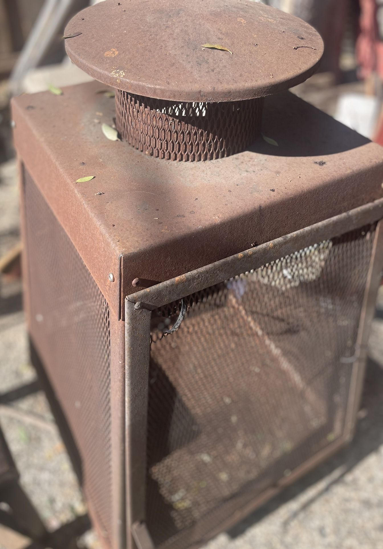Rustic outdoor metal fireplace with mesh sides and chimney. Great for backyard fires or patio use. Please note: rust over time has thinned parts of the metal base. My husband had planned to repair/DIY it but never got around to it. Selling as-is. Still a nice decorative or project piece with lots of character. If interested, please let me know when you can pick up. Thank you! Cash only. Local pick up in San José, CA. Available on the weekends and evenings during the week.