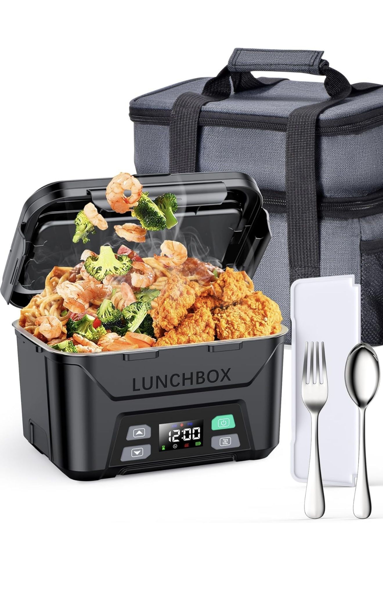 Lonchera térmica recargable para hombres, lonchera eléctrica inalámbrica de 1.3L para adultos con calefacción programada inteligente, calentador de alimentos portátil con accesorios