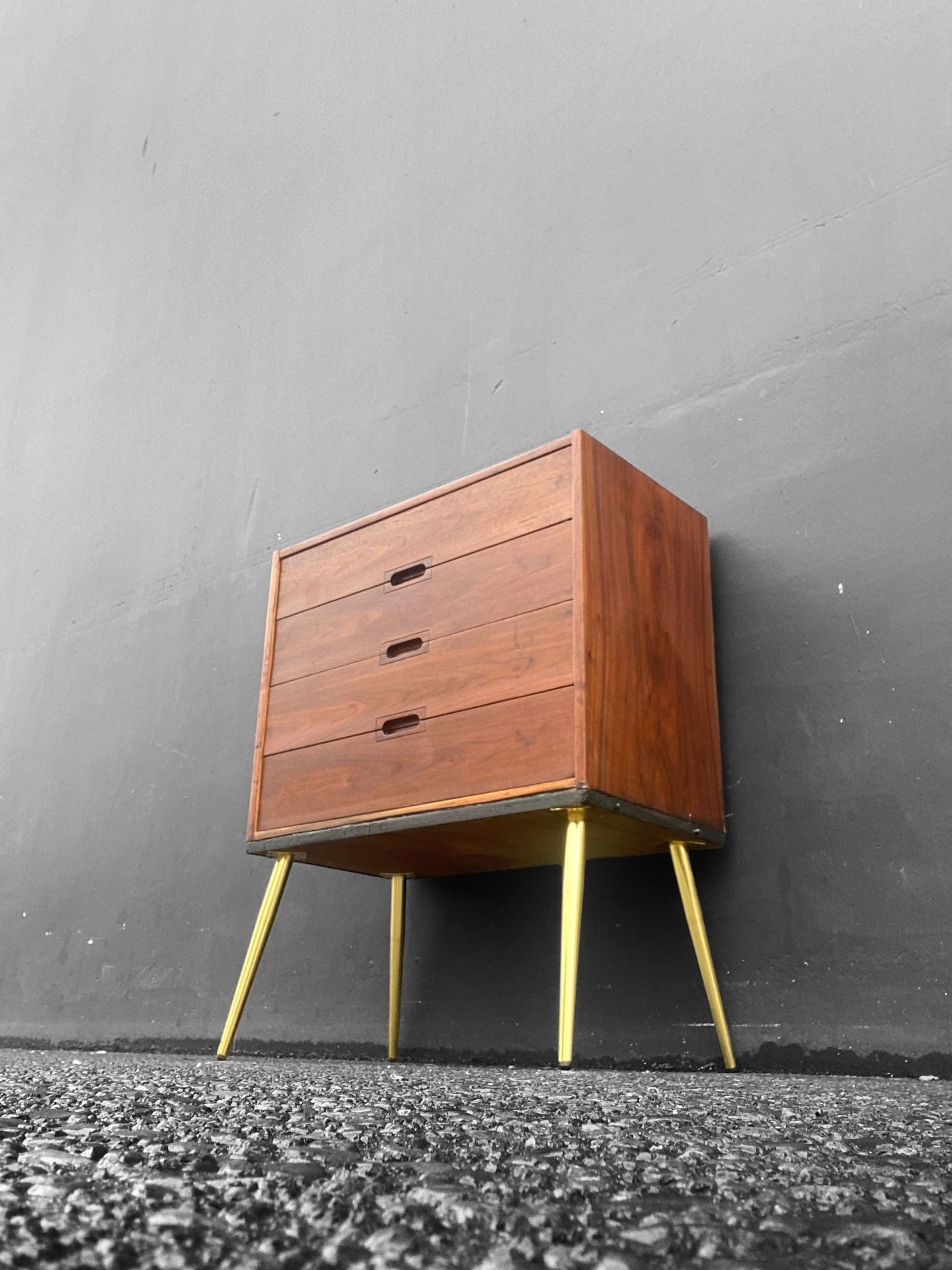 Lovely And Unique MCM Solid Wood Dresser With Gorgeous Walnut Handles