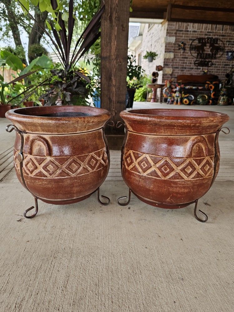 Brick Color Clay Pots (Planters) Plants, Pottery, Talavera. $70 cada una.