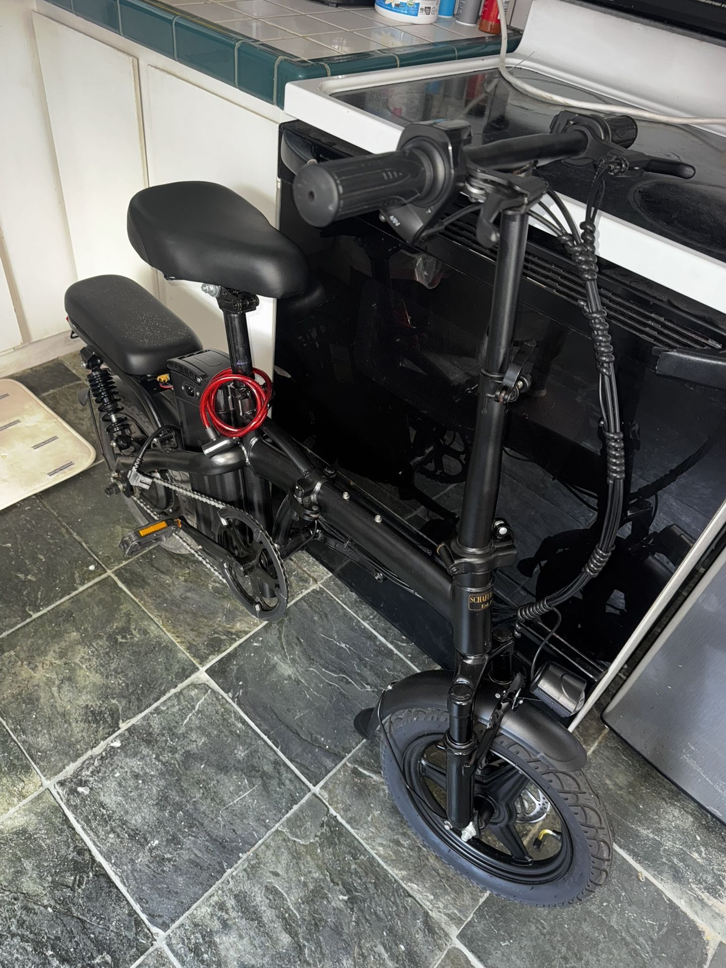 Selling my Black Ebike! 48V - 10.4Ah battery! Used like 8 times , got a new one so i dont need this one anymore! Its like new! Stick have the stickers on the handles ! Has a back passenger seat! Comes with Charger and a front Basket! Pick up Only Cash only! Thanks