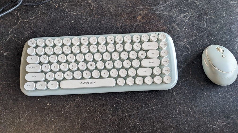 Pastel teal / mint green color Used for a few months in excellent condition Has cute raised keys