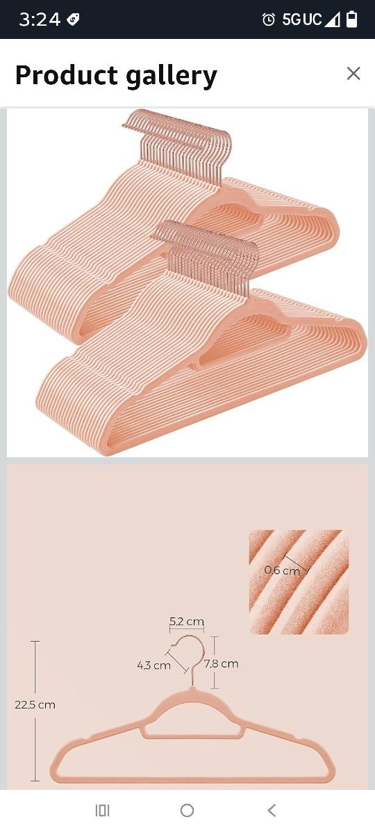 Velvet Clothes Hangers, Non-Slip Clothes Hangers, with Tie Bar and 360° Swivel Hook, Space Saving, 1/4" Thick, 17.1" Long, Gold (Pack of 50)