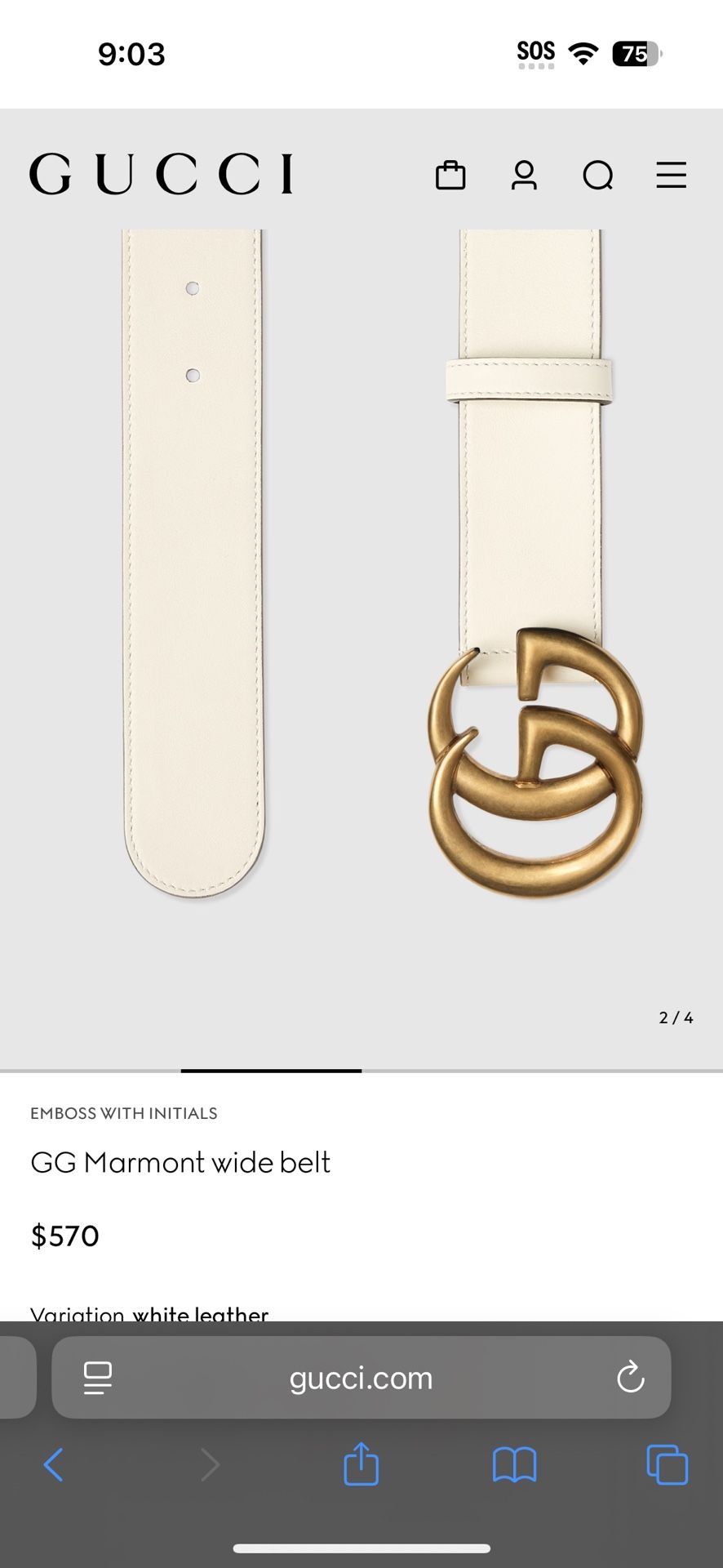 Gucci Marmont Belt *White* AUTHENTIC