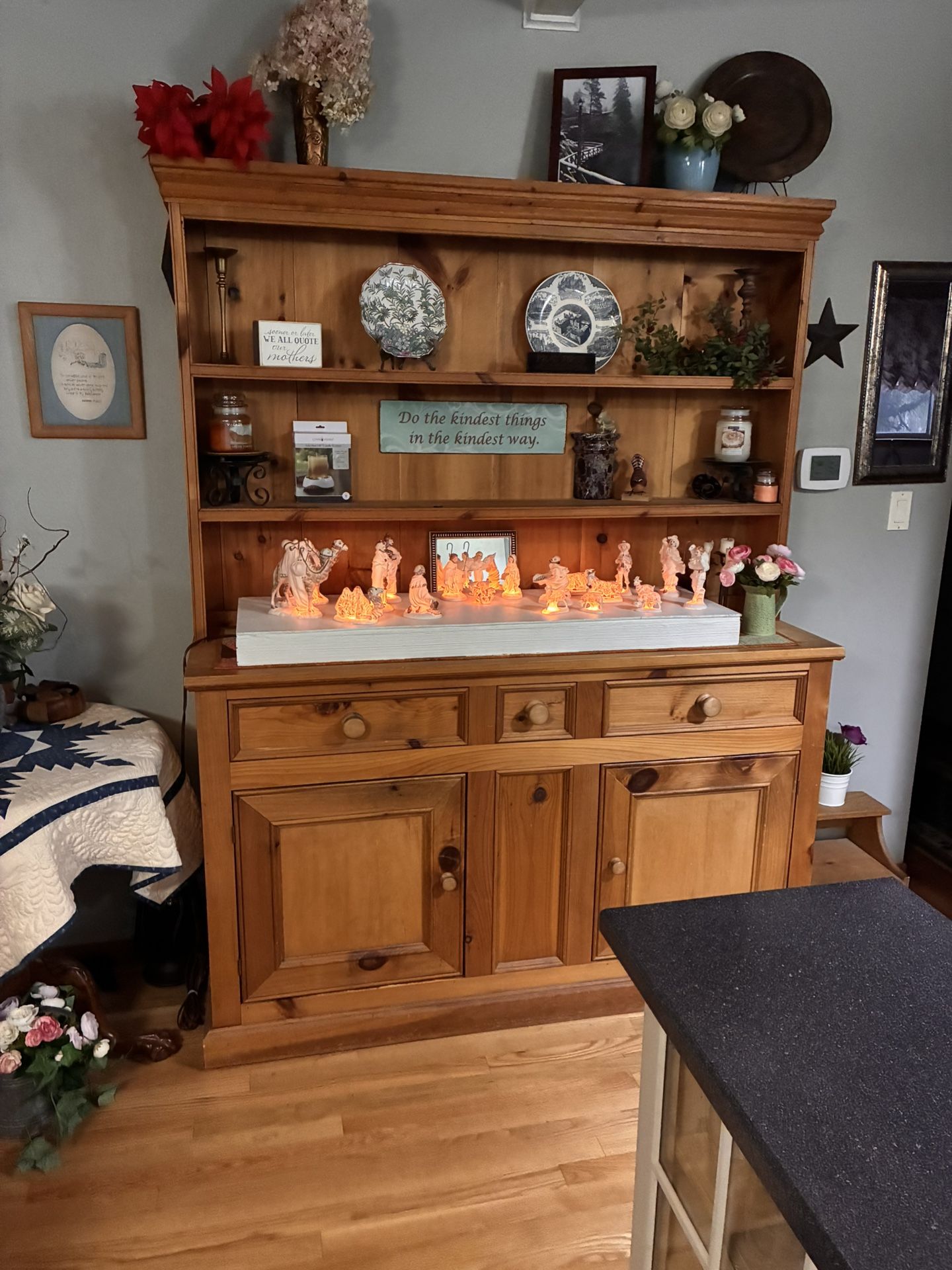 Bottom Cabinet: 371/2" H, 6' W, 19" D. Upper Shelves: 41" H, 6' W, 8" D