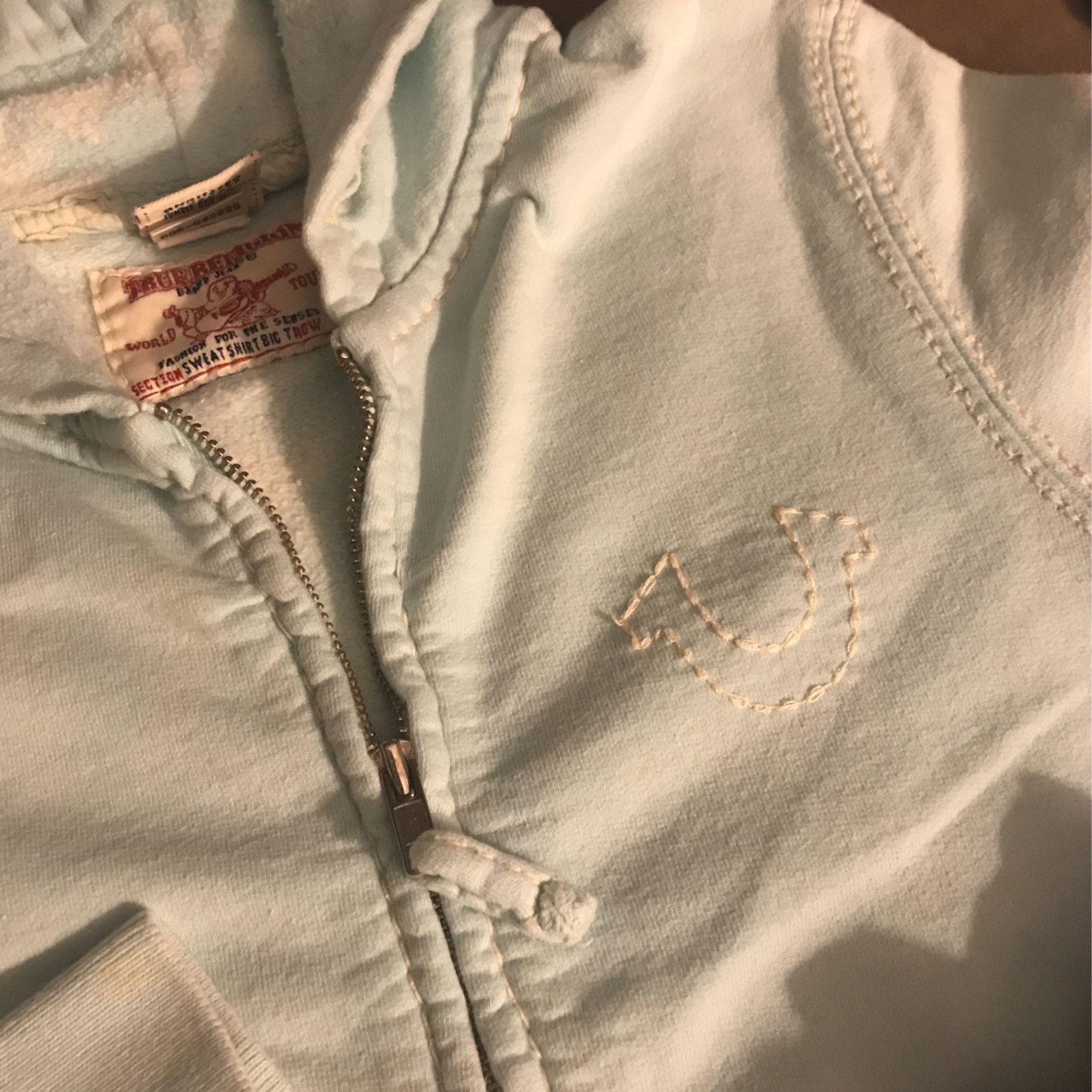 True Religion Zip up Cotton jacket size M (12) Beautiful Aqua color $10 LA WAX JEAN stretch size1 (12-14) $4 Good condition.