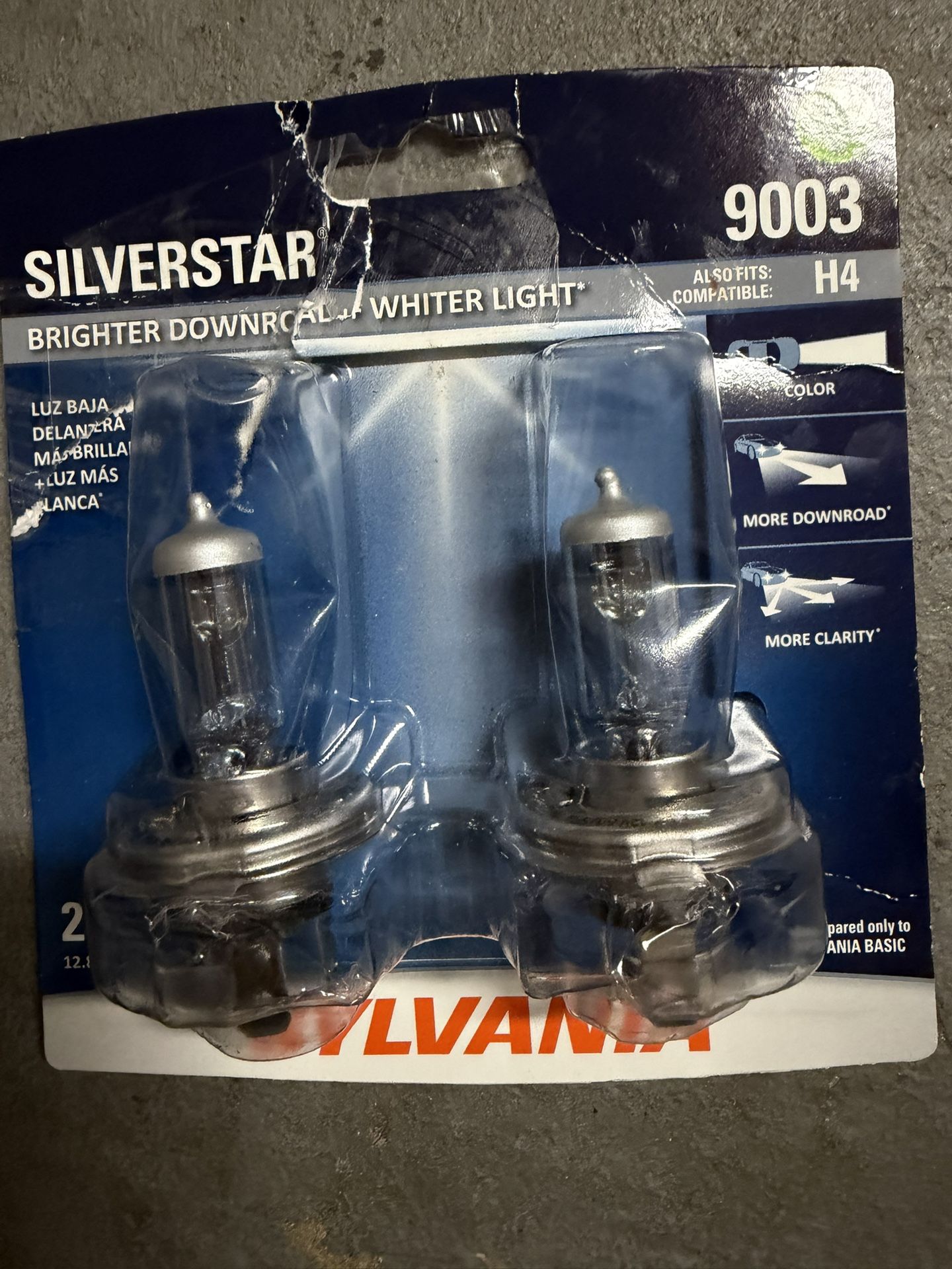 Upgrade your nighttime driving visibility with SYLVANIA SilverStar 9003/H4 halogen bulbs. Designed to deliver a brighter, whiter light compared to standard halogen bulbs, helping improve road clarity and overall safety. Perfect direct replacement bulbs for compatible vehicles, offering improved downroad visibility and a cleaner white beam for a more modern look. Key Features: • Bulb type: 9003 / H4 compatible • Brighter, whiter halogen output • Improved downroad visibility and clarity • Direct replacement installation • Designed for better nighttime driving confidence • 2-pack set Condition: Open box, like new