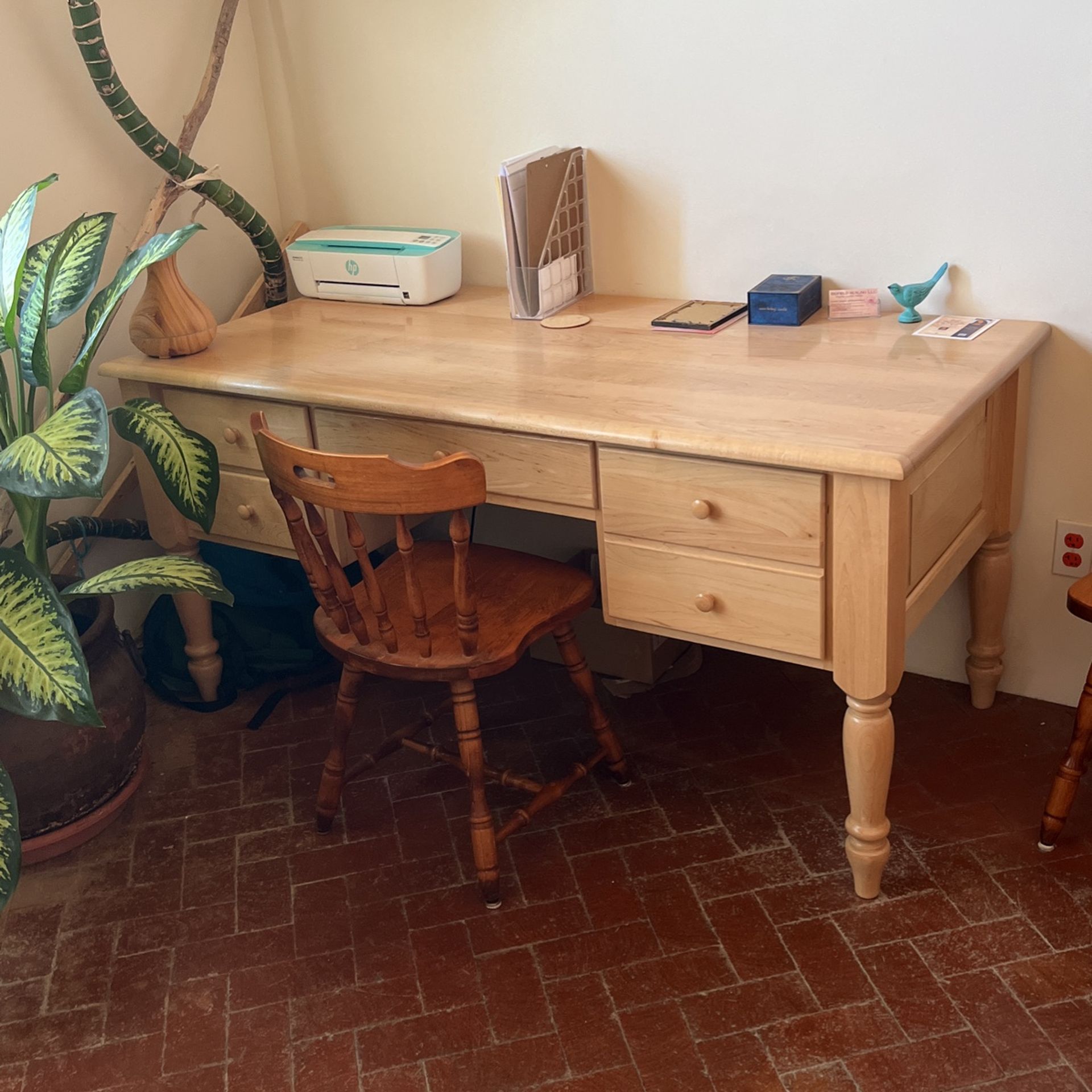 See pictures. Beautiful Solid desk 63”W 31”D 31H