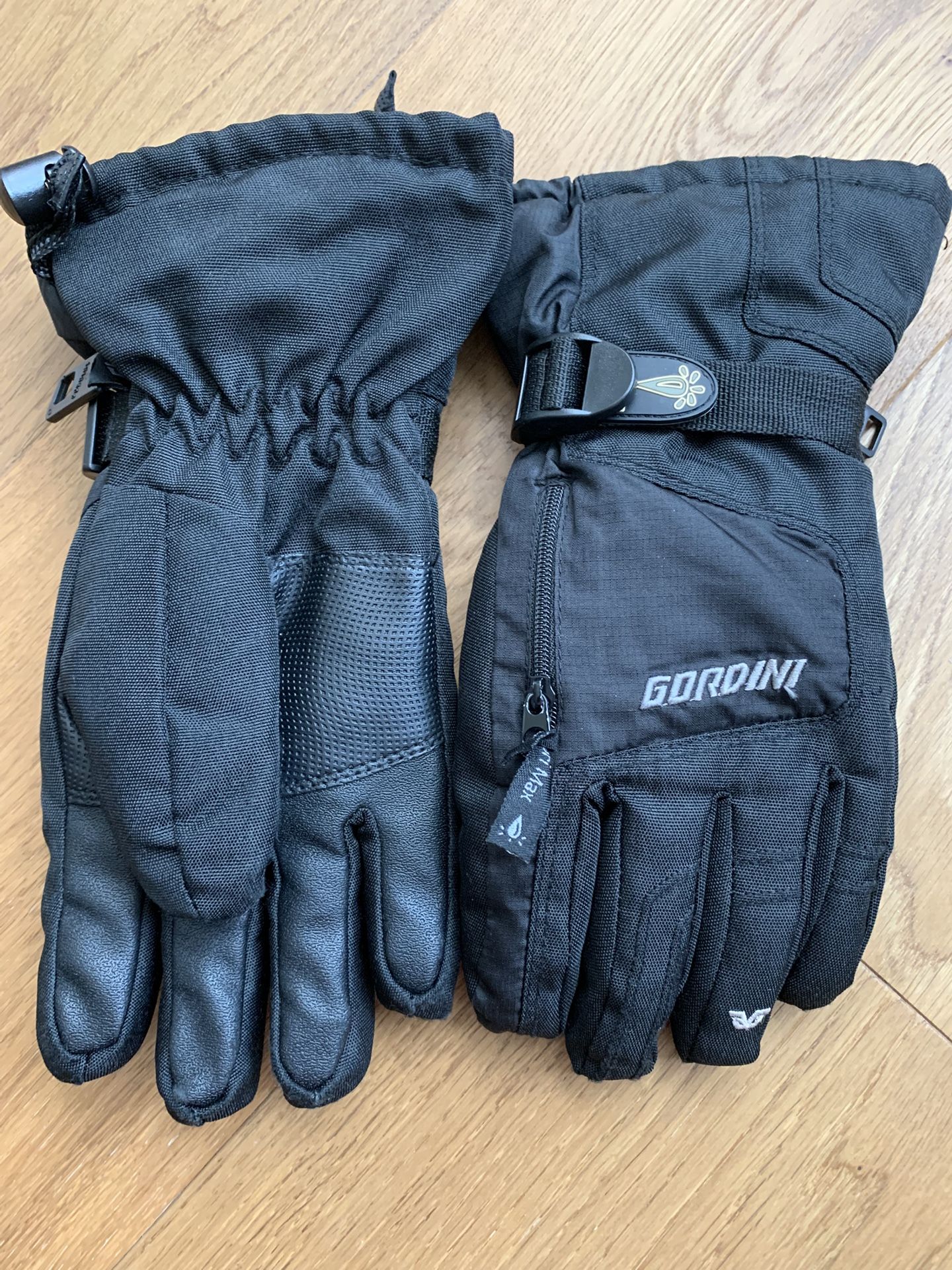 Gordini black gloves. Has hand warmer pouch. Size is kids medium. Good condition.