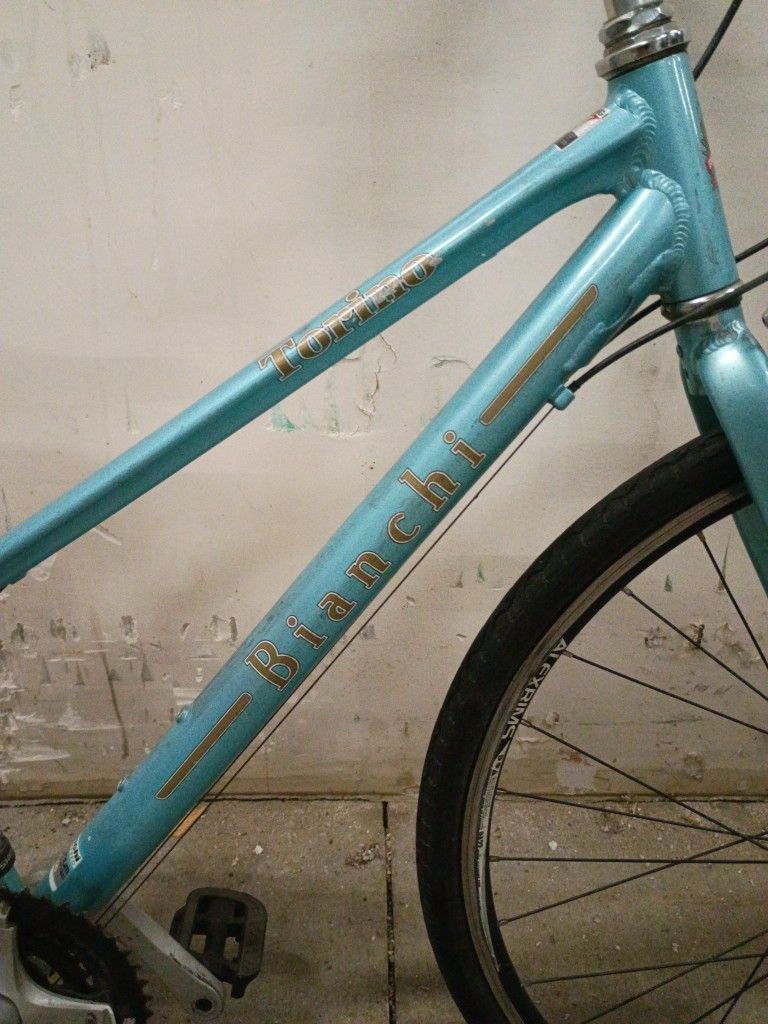 It is a city bike designed for commuting and leisurely rides. Used. Bike basket to hold items. Good tires, brakes, and chain.