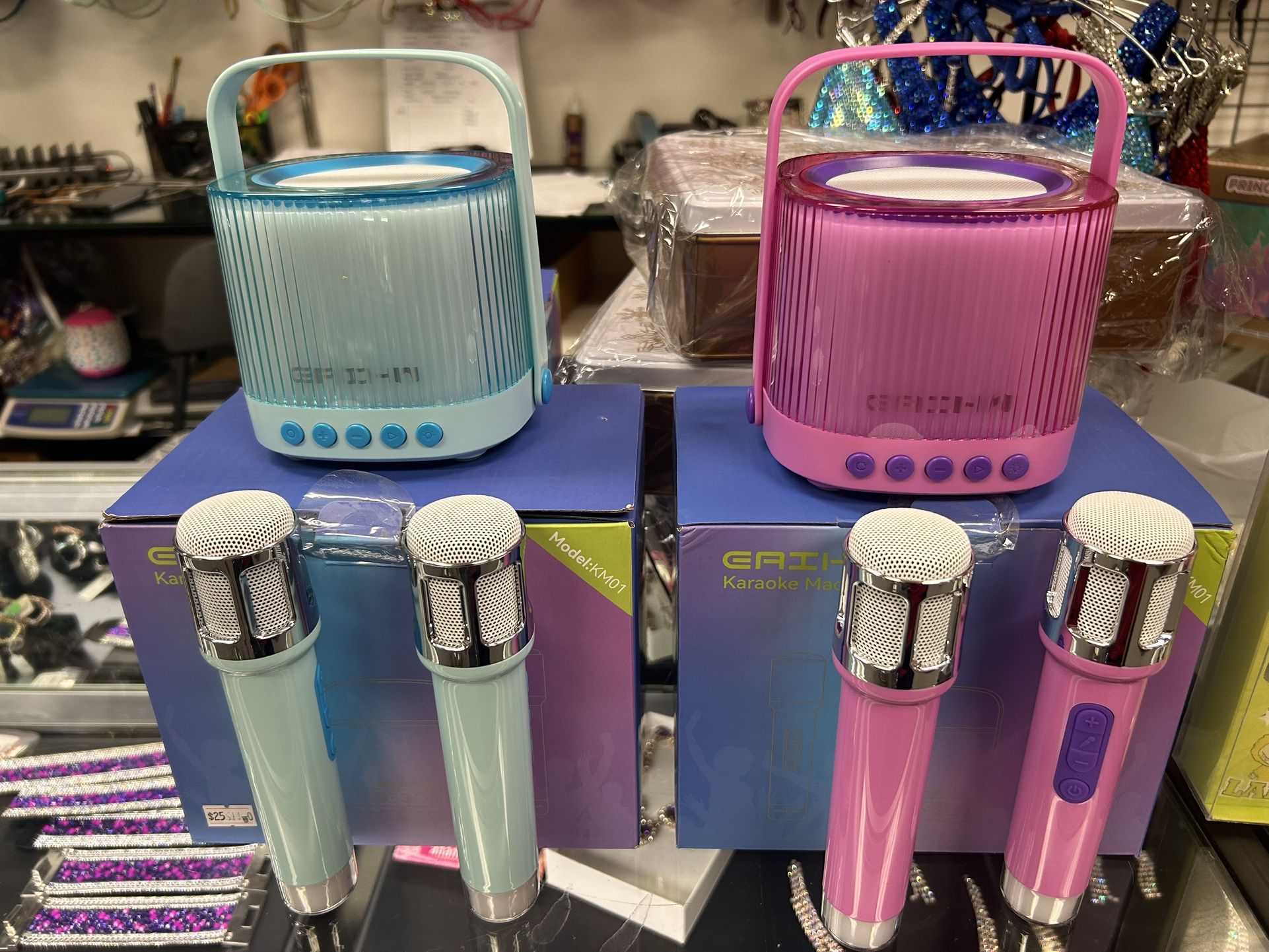 Karaoke machines are $25 make up kits are $20. Labubu’s are $20 apiece. The headphones are $10 stocking stuffers one dollar.