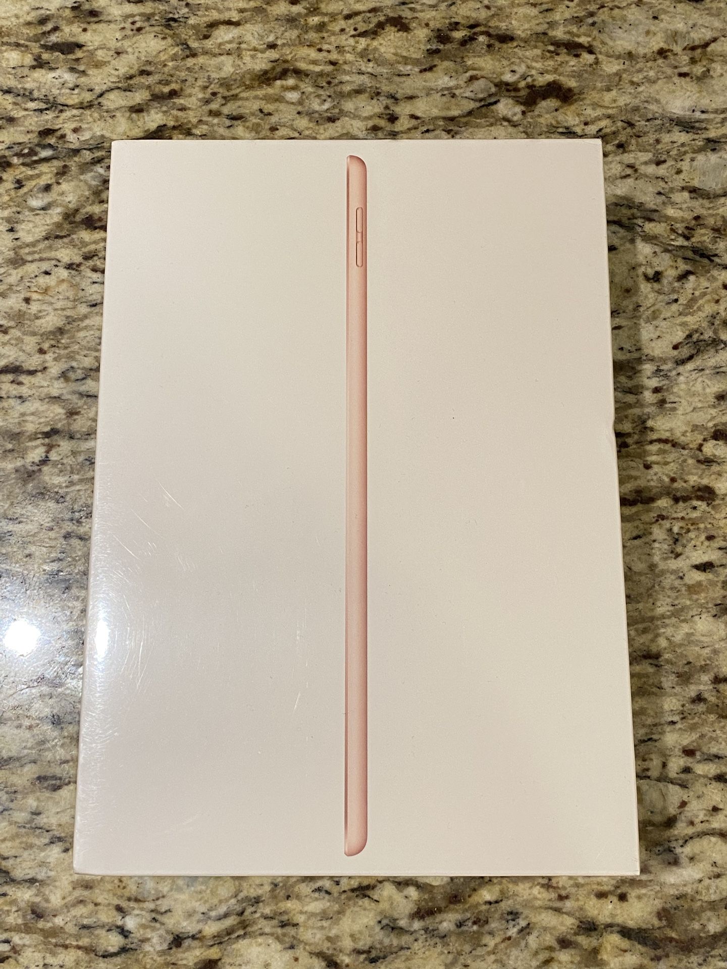 Selling a brand new iPad that has never been opened. The cellophane is still wrapped around the box. It’s a 7 generation in the gold/pink color and it has the 128 GB storage. This would be a perfect Christmas present. $180 obro