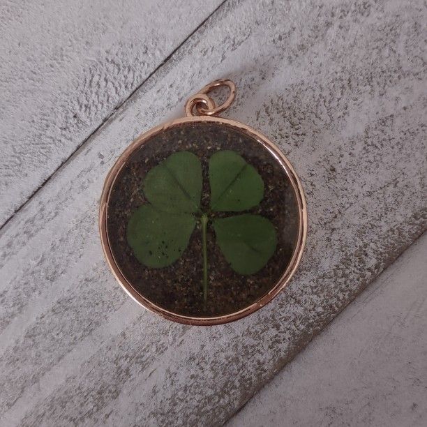 Four leaf clover pendant. Resin with sand and real four leaf clover