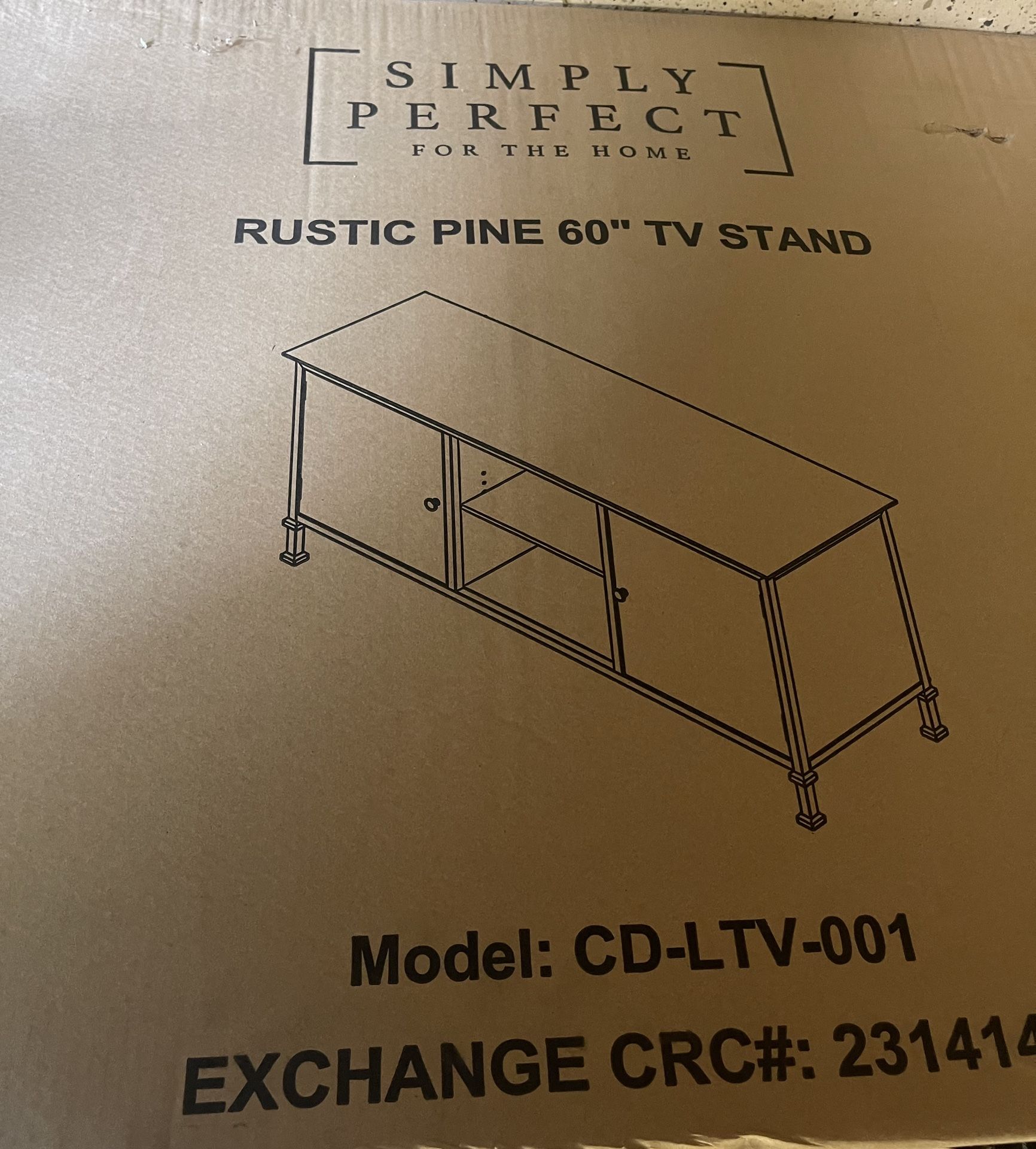 New In Box, Simply Perfect Rustic Pine Console TV Stand 60”