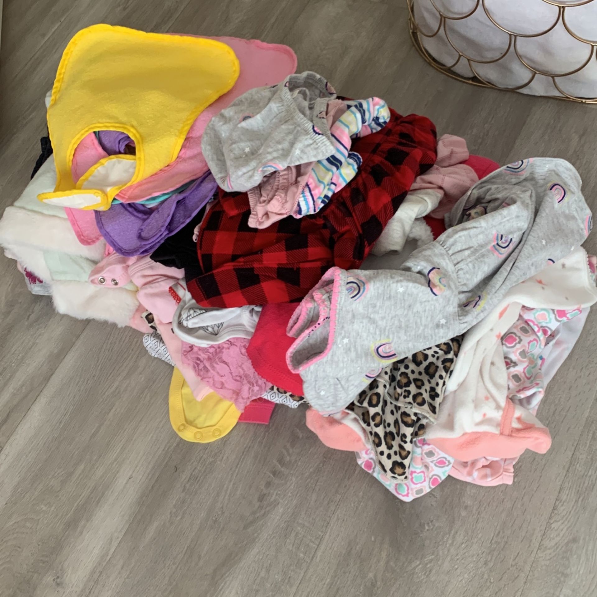 Normal wear very clean. LOT of girl outfits and brand new swaddles too. The whole thing for $30 it’s a steal!