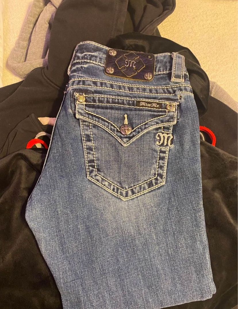 Mid rise Miss me Jeans , Size 28 . A small tear in the pants but can easily be sewed