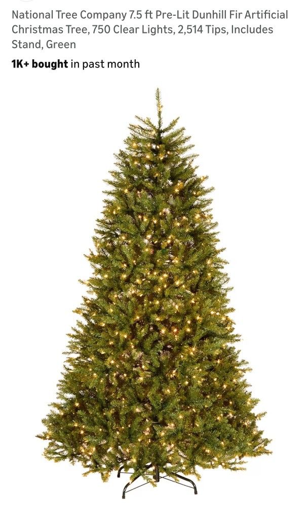 Brand New! National Tree Company 7.5 ft Pre-Lit Dunhill Fir Artificial Christmas Tree
