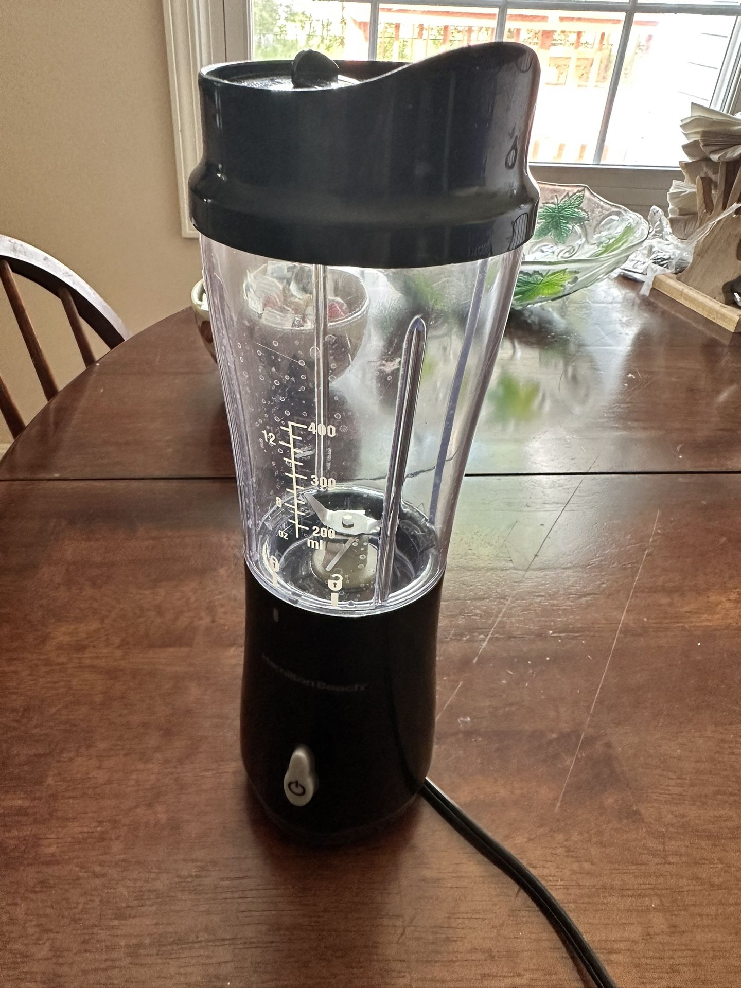 BLEND AND GO: Blend fruit smoothies, shakes and your favorite icy drinks right in the 14 oz. BPA-free portable travel jar, then grab it and go. The blender jar comes with a travel lid to double as a go-cup. It's portable, lightweight and fits most car cup holders. POWERFUL BLENDING PERFORMANCE: Durable stainless steel blades on the blender power through ice, frozen fruits and leafy greens for smooth results. Perfect for adding more vitamins and nutrients into your diet in smoothies and protein shakes. QUICK & EASY CLEANUP: The blending jar, blades and travel lid on this Hamilton Beach blender are all dishwasher safe so cleaning up is a breeze. Ice crushing power for smooth results efficient 175-watt motor provides all the power you need for fast, reliable performance COMPACT DESIGN FITS MOST CUP HOLDERS: The small size of the personal blender jar makes it perfect for the home, office, travel, small dorms and apartments. The compact base comes with a 24” cord. EASY ONE-TOUCH BLENDING. Quickly prepare a variety of icy drinks by just pressing the button. It's so easy. This is sure to be your go-to blender for shakes and smoothies.