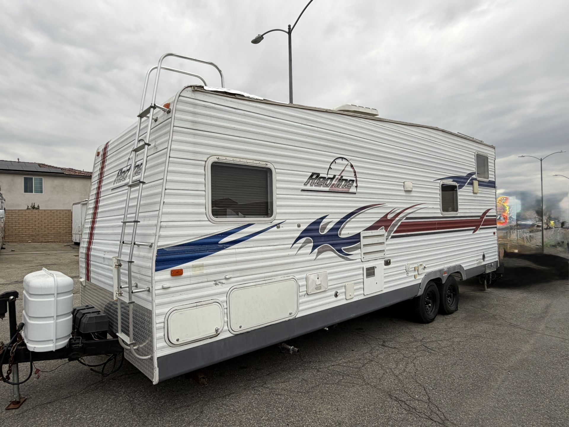 2007 Fleet wood Redline Travel Trailer Toy Hauler Model 260FS. Dry weight 6,800 pounds and can be delivered if needed. In good condition and everything in working order. Can sleep up to eight people. Front full size bed, rear electric bunk bed, foldable sofa and dinette table turn into beds. Onboard Onan generator and fueling station. Full kitchen with all appliances. Central A/C and heating. Full kitchen with shower, toilet and separate vanity sink. Full size awning and front electric tongue jack.