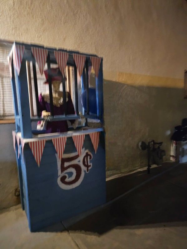 Lots of blood, sweat, tears, & material went into making this sturdy "ticket booth" prop. Can be used for "creepy" circus halloween theme or circus bday party. $250 or best offer. Pick up in Hacienda Hts *Heavy item, will need a dolly and a 2nd pair of hands **Skeleton not included
