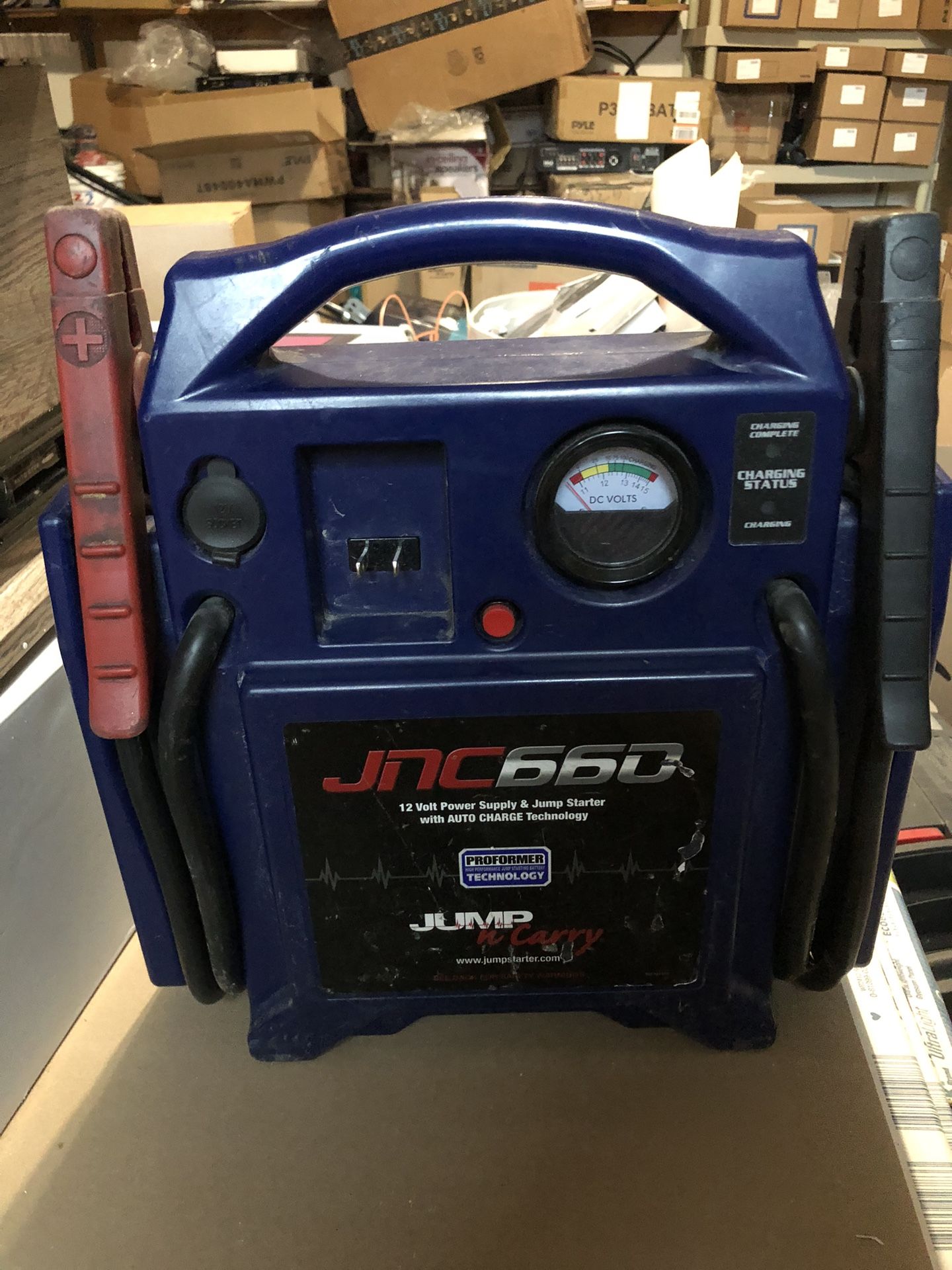 Good condition. (Charging Cable Not Included). The Jump-N-Carry JNC(contact info removed) Peak Amp 12-Volt Jump Starter is a portable and powerful automotive tool designed to help jump-start vehicles in need. With a peak amp capacity of 1700Amp, this single item product from the trusted brand Jump-N-Carry includes clamps for easy connection to batteries. The 12V voltage ensures optimal performance for a variety of vehicles, making it a convenient and essential addition to any automotive tool collection. Keep your vehicles running smoothly with this reliable jump starter.