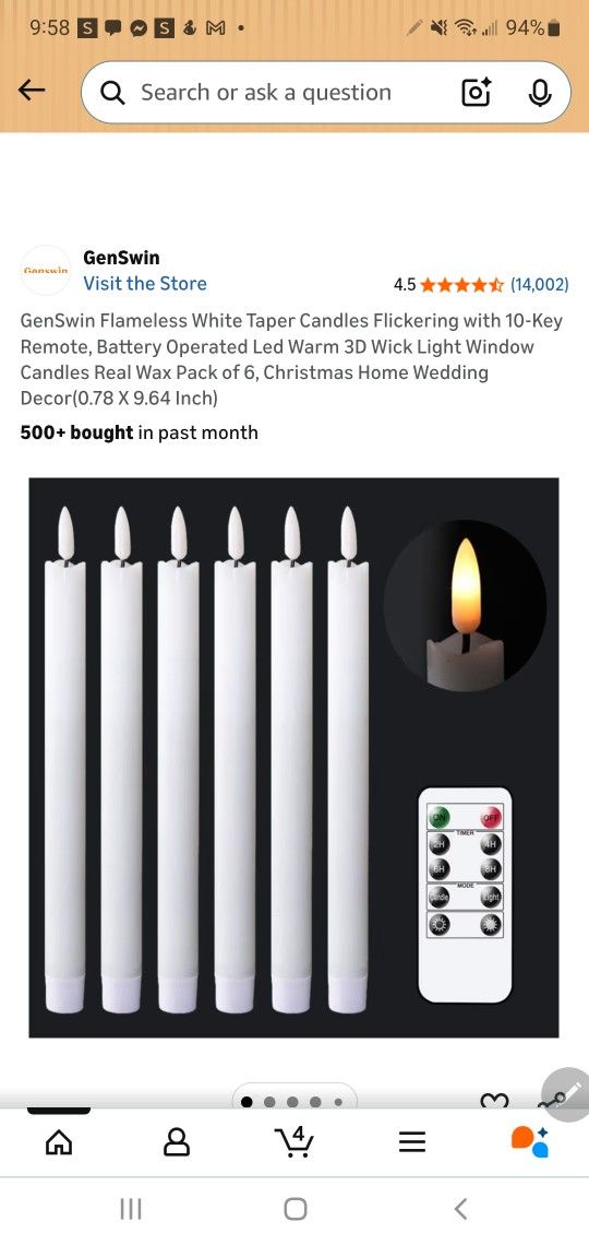 GenSwin Flameless White Taper Candles Flickering with 10-Key Remote, Battery Operated Led Warm 3D Wick Light Window Candles Real Wax Pack of 6, Christ