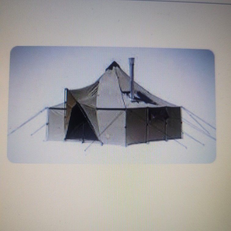 Text in very good condition, all parts (stakes, ties, poles, bag) are in good condition. Photo is an online stock pic (I don't have any of it set up), but it can be taken out of the bag for inspection. Does not include stove or chimney pipe.