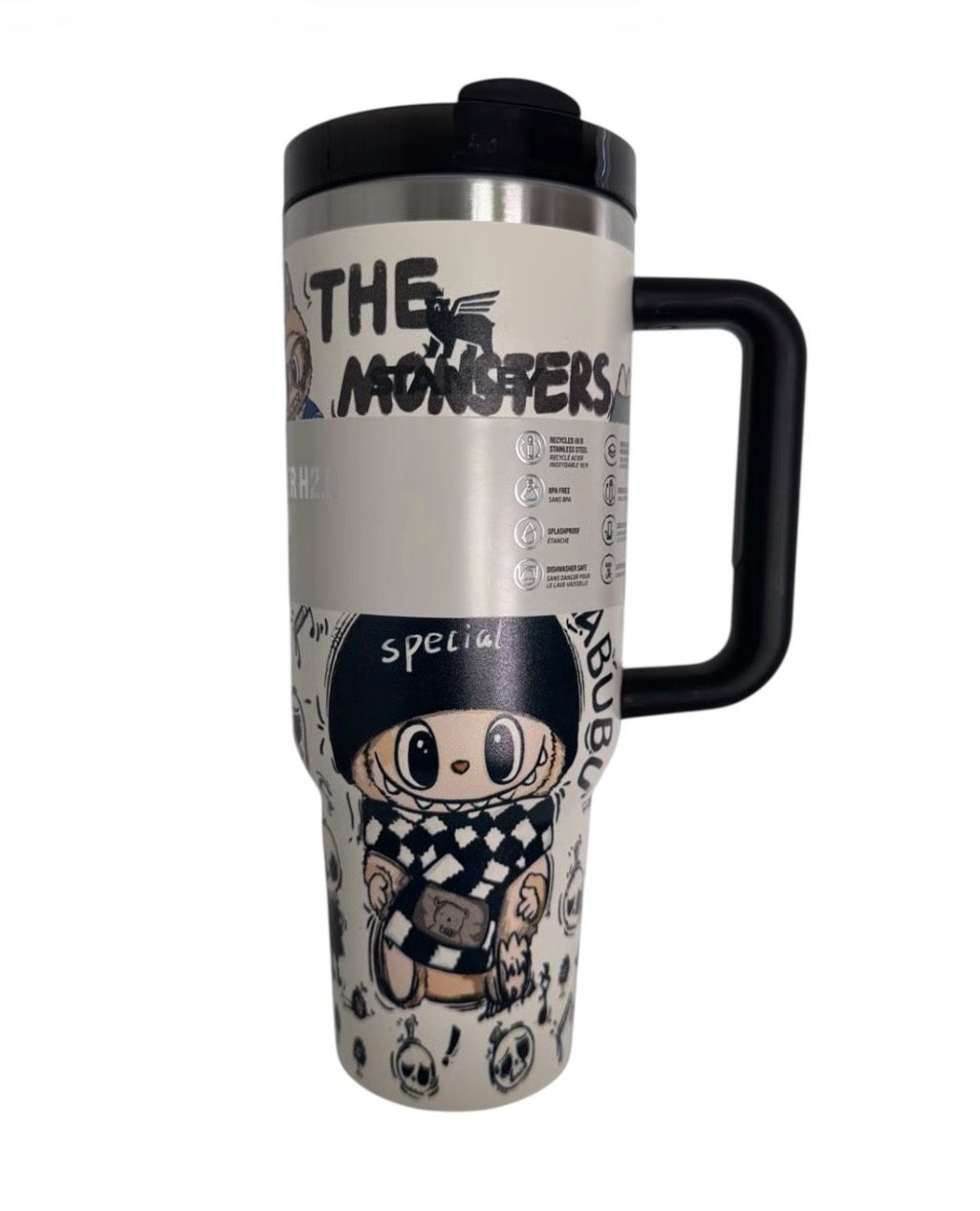 It is a collaboration between Stanley and Pop Mart's "The Monsters" line. The tumbler is made of durable stainless steel and has a 40oz capacity. It is a highly sought-after collectible item. The design features the iconic Labubu character and comes with a matching box and straw.