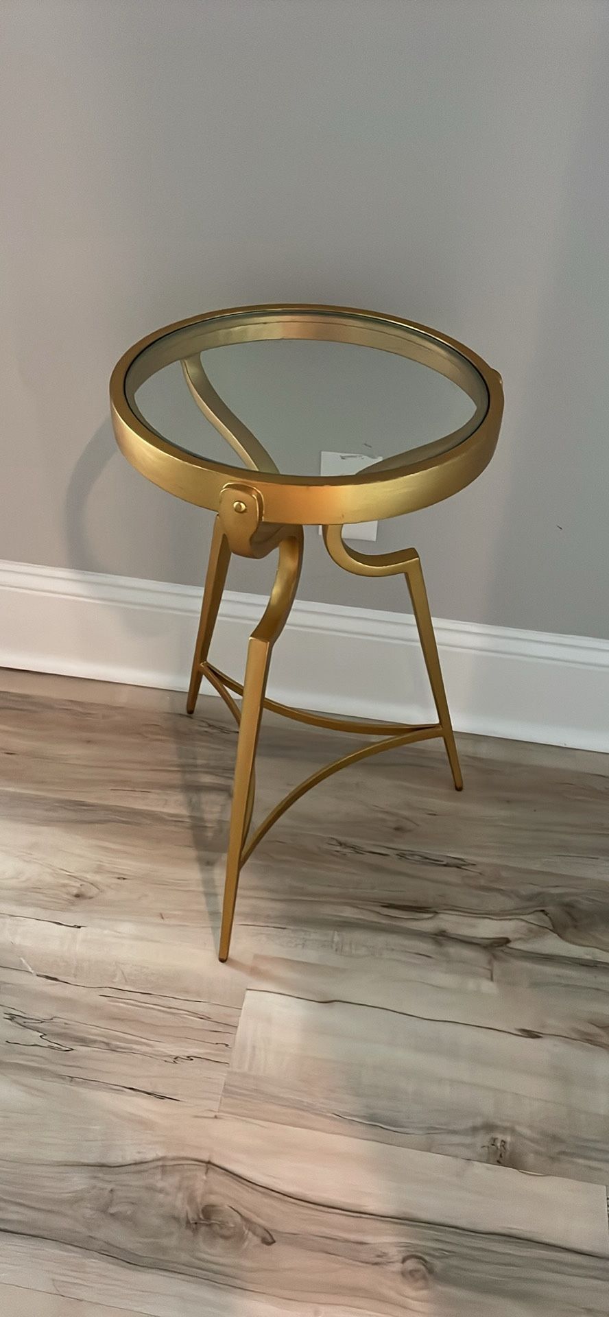 Plant stand or end table, glass top with bronze legs. 14” across, 24.5” tall. In like new condition! Pick up in Lakeland