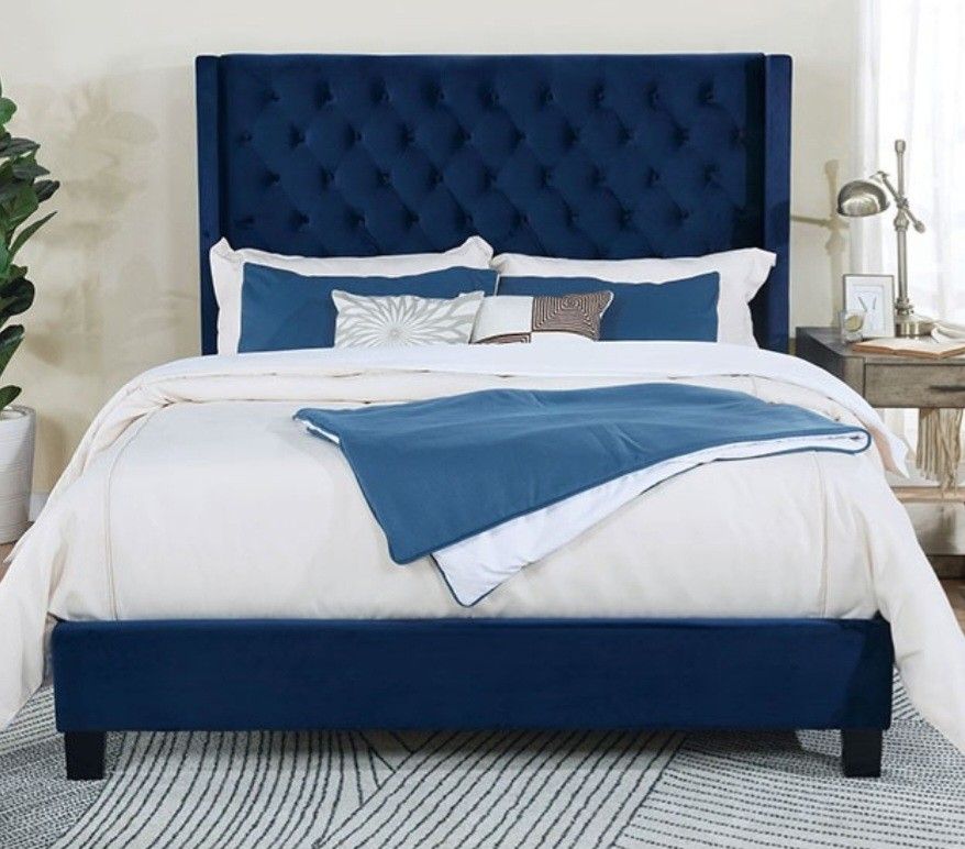 Brand New Navy Blue Queen Bed Frame (Available In California & Eastern King)