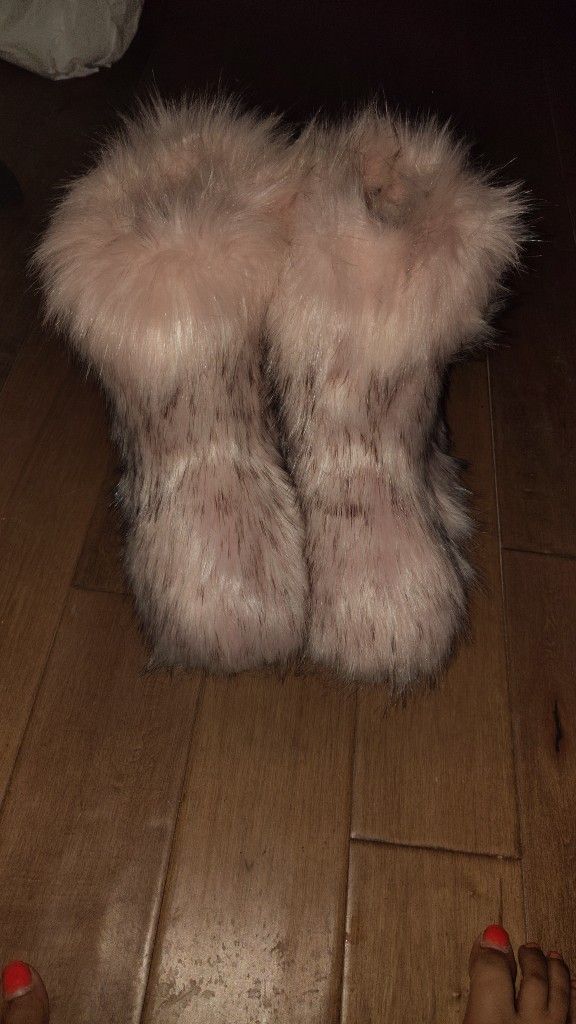 Pink And Grey Furry Boots