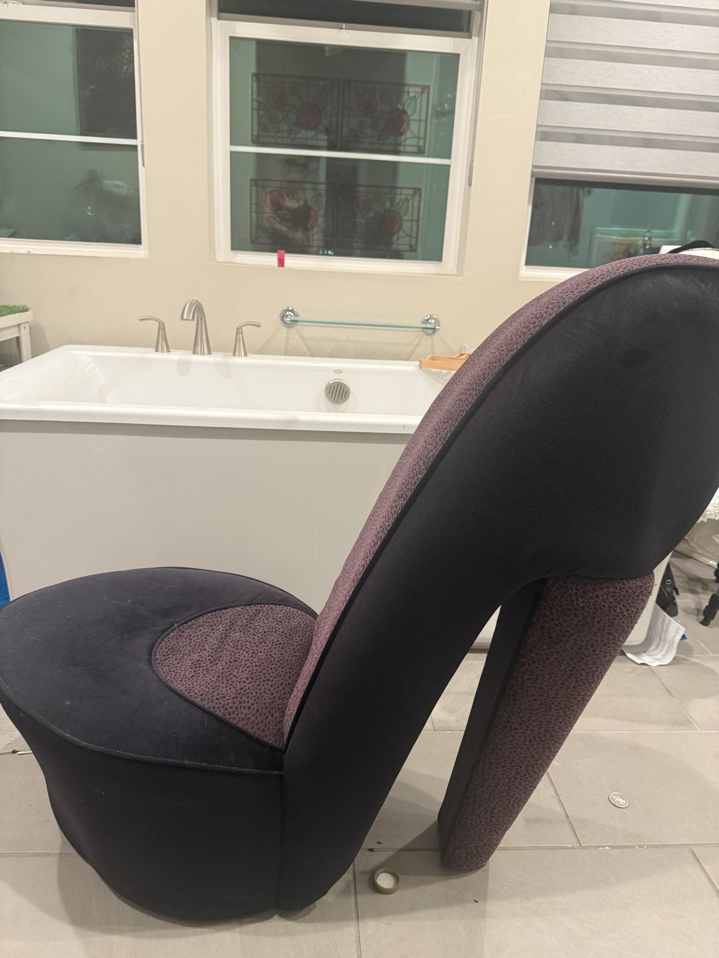 This chair is actually really comfortable and it’s super cute. It’s in good used condition. I’m moving and have a ton of stuff I’m selling - free people dresses, vintage dresses, jewelry, lululemon, and more. Message me if you’re interested. Thanks!
