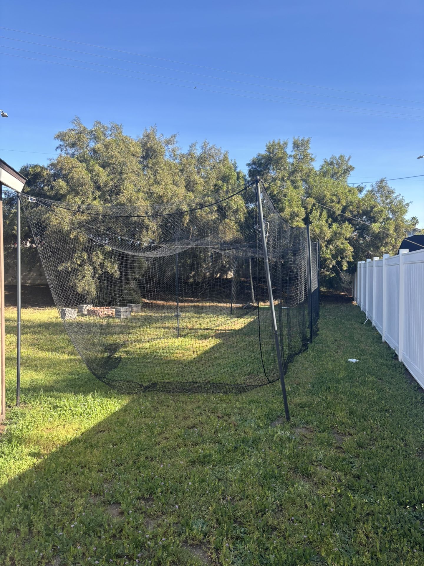 Used batting cage. There is wear on the cage and poles but still very usable. Daughter left for college softball so we no longer have a need for it. Broken down and ready to be taken and installed today.