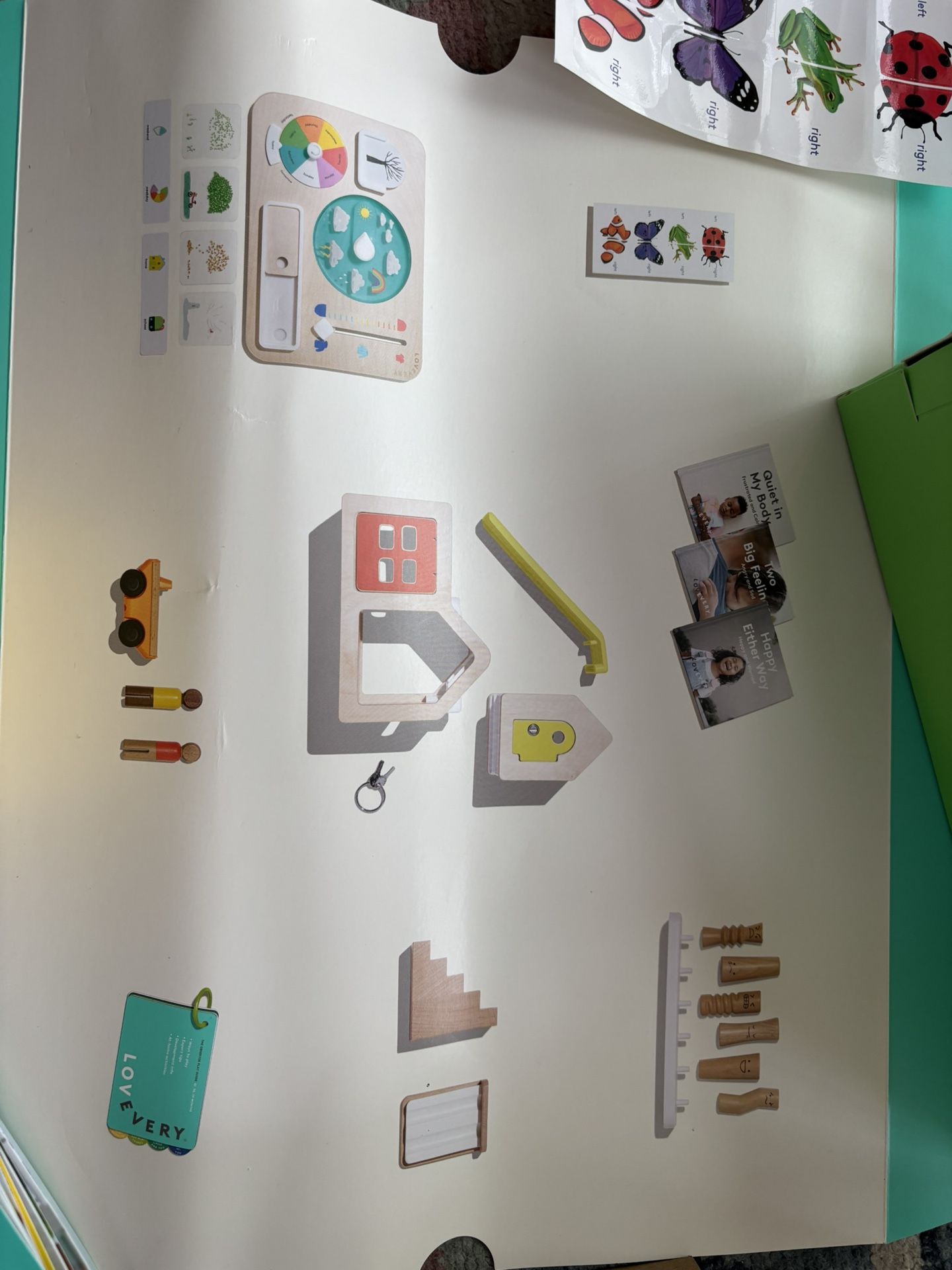 LovEvery “The Observer” 37-39 months box featuring BRAND NEW toys. We did not open 75% of things included in this subscription box. NOT INCLUDED: Weather Board and the 3 board books.