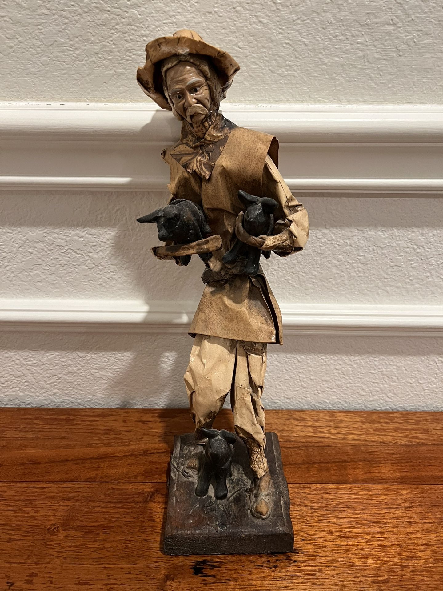 Unique vintage figurine with detailed craftsmanship. Man carrying 2 pigs with one at his feet. Cash Only. PPU near Braums in North Richland Hills.