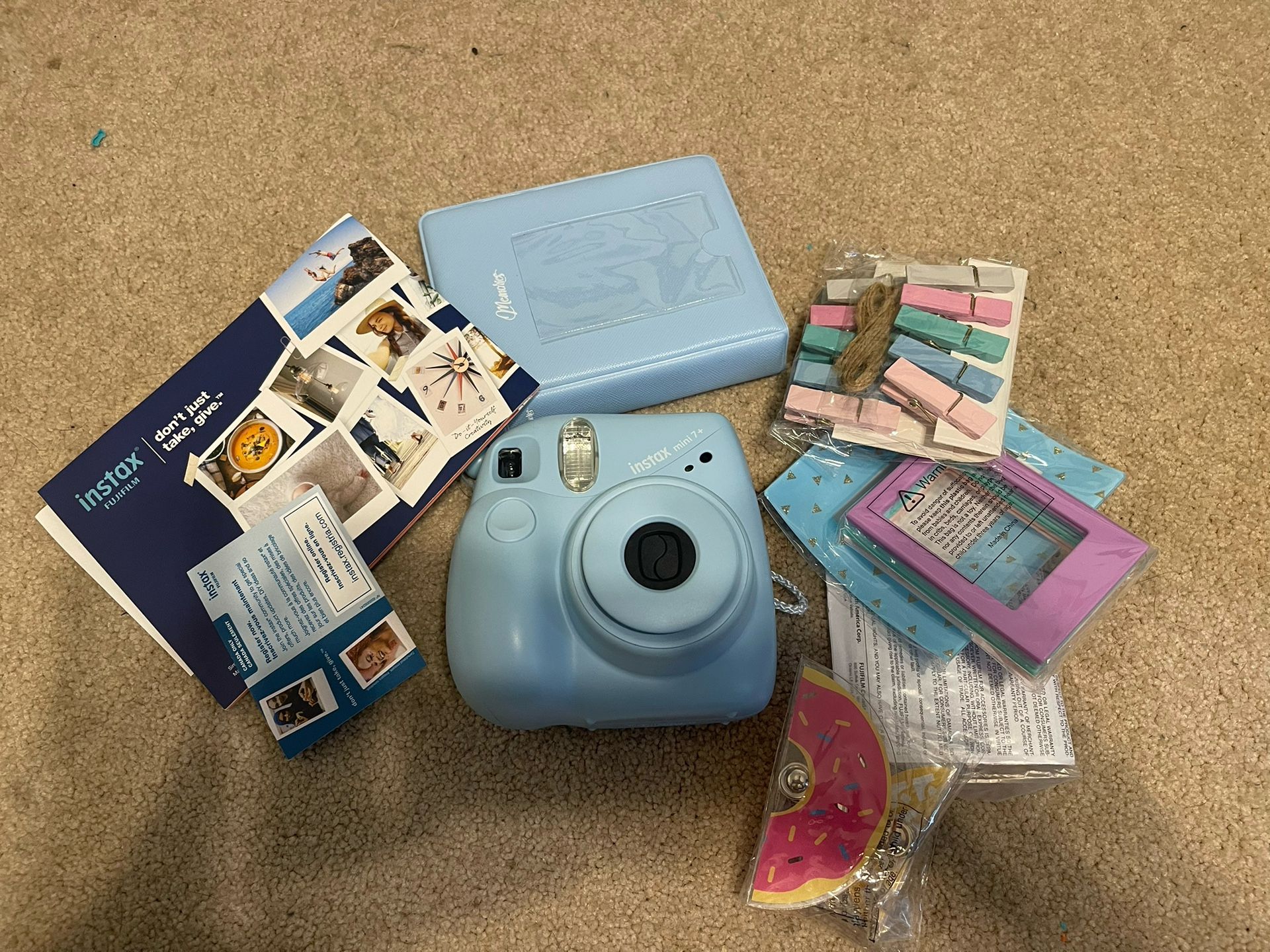 Barely used. Has all the things it came with except film. Used once . This one is blue